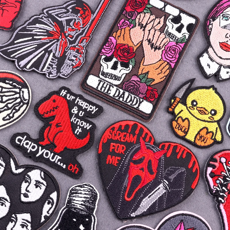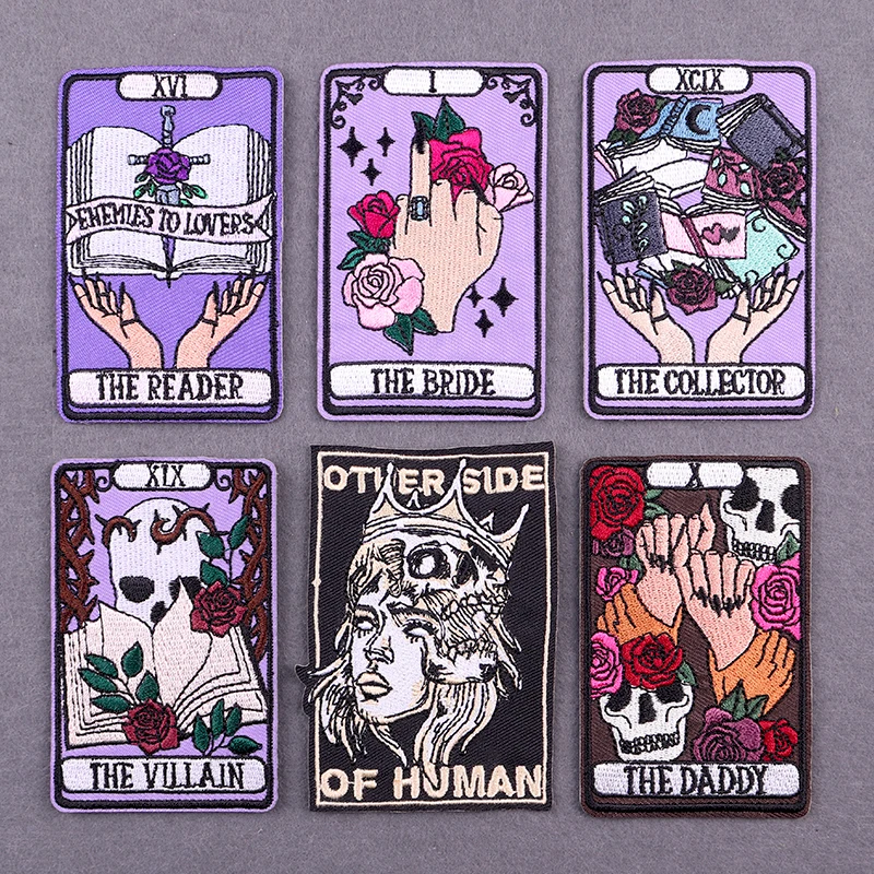 Parches bordados Punk de Hip Hop para ropa, parche termoadhesivo para planchar, parches para ropa, tarjetas de Tarot, parche de calavera para ropa