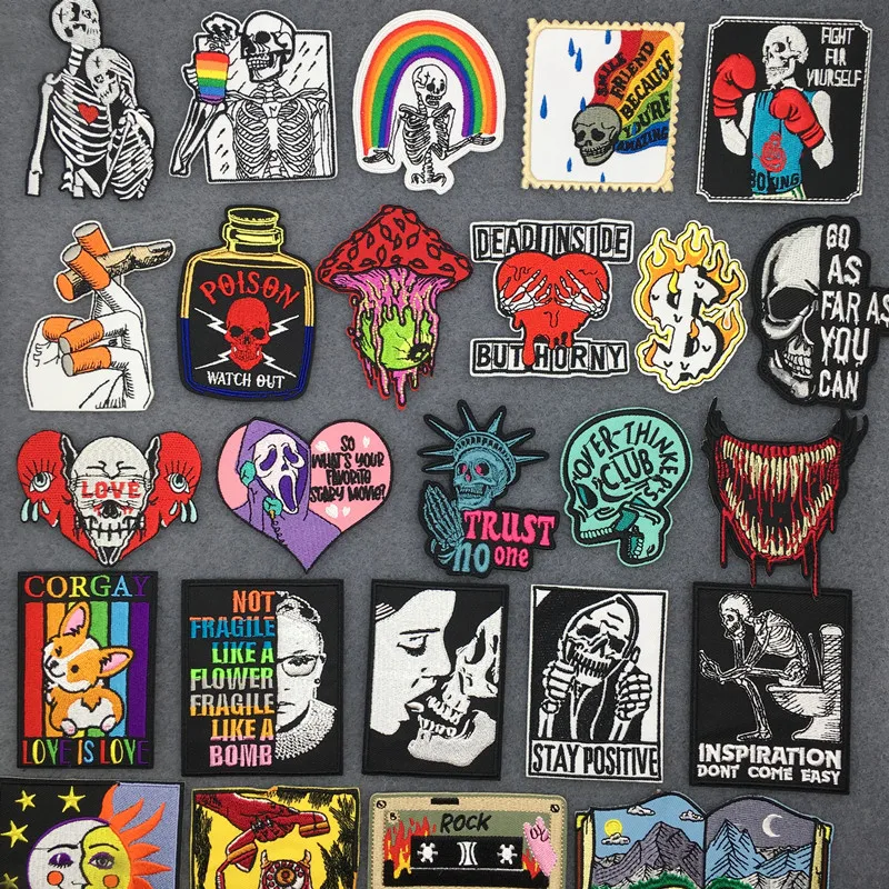 Parches bordados Punk para planchar para ropa, parches termoadhesivos, apliques DIY, insignia para chaqueta