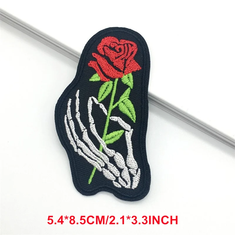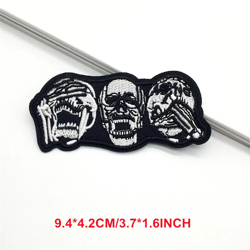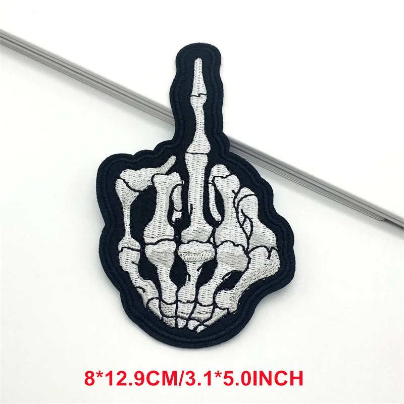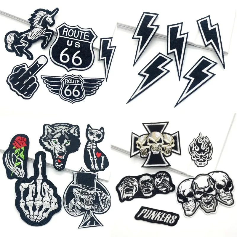 Parches bordados Punk en blanco y negro de 5 piezas para apliques de ropa, pegatinas para planchar, costura, decoración DIY, insignias para ropa
