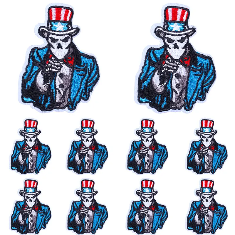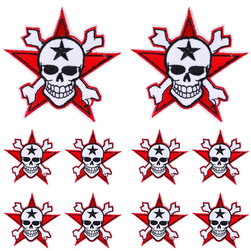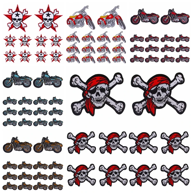 Parches bordados Punk/Skull para ropa, parches termoadhesivos para planchar en motocicleta, DIY, 10 unids/lote