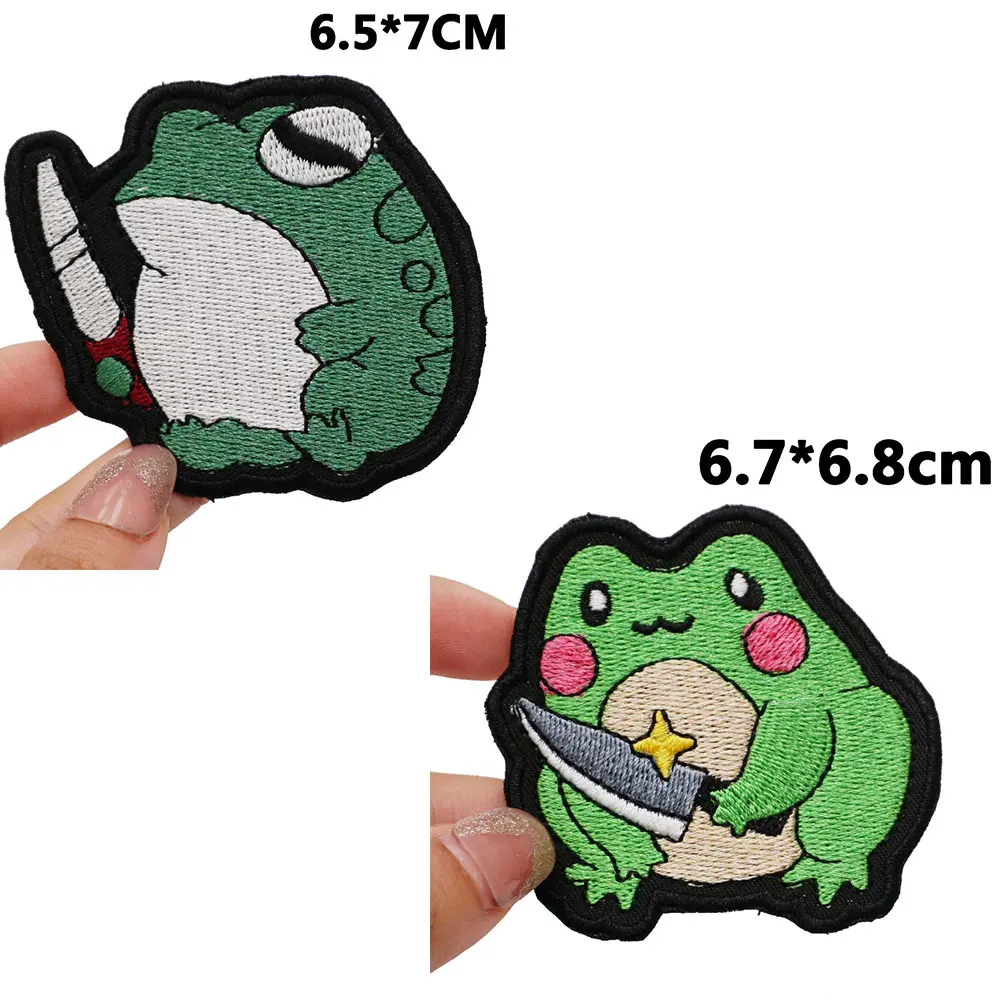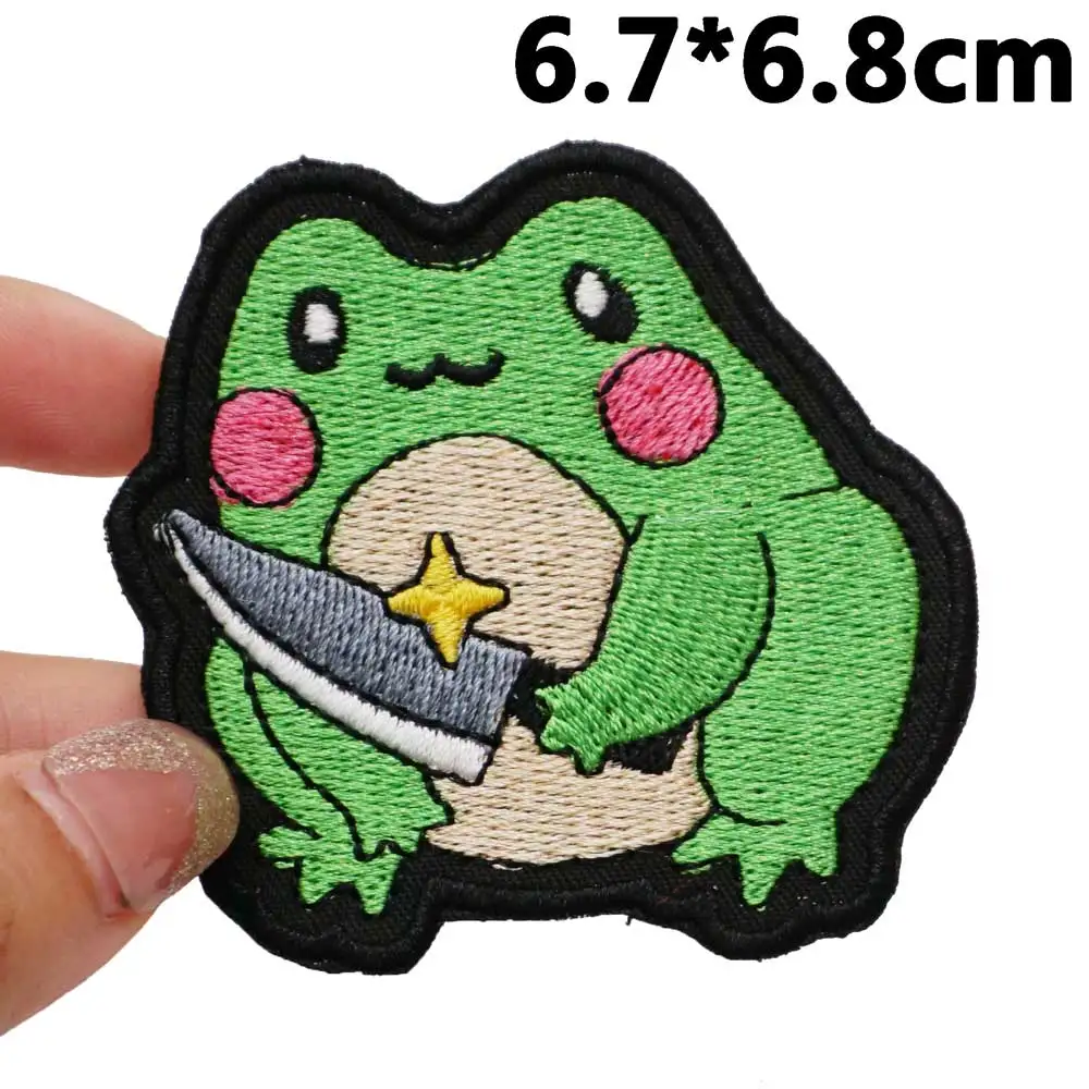Parches bordados de rana con cuchillo, etiqueta de costura, banda de motorista punk, insignias de ropa de Rock con respaldo de gancho