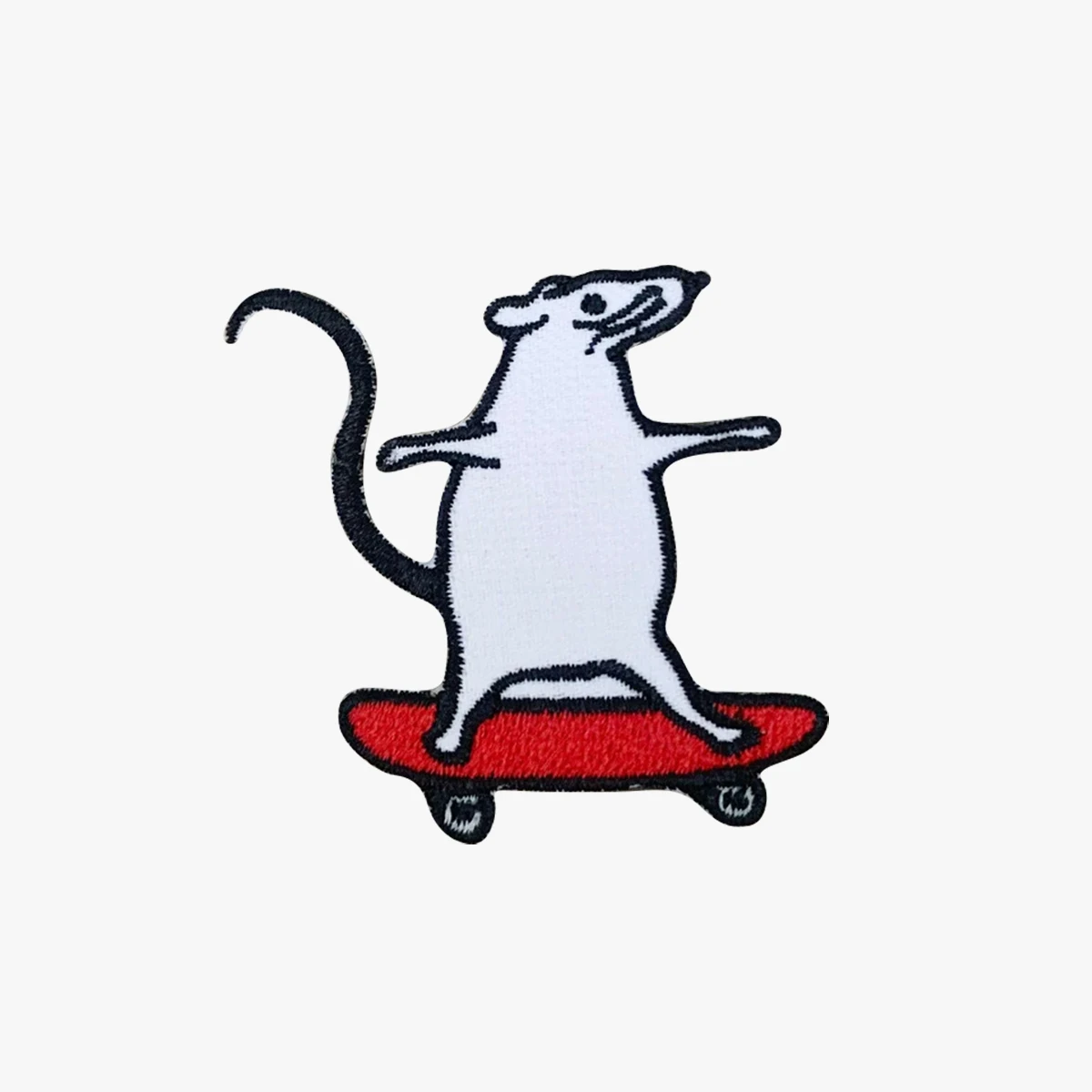 Parches bordados de rata en monopatín, Hierro en rata para chaquetas, bordado para mochila, Parche de hierro, insignias para sombreros