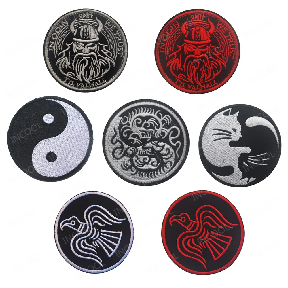 Parches bordados redondos de gato, pájaro, dragón, Dios, chino, Tai Chi, Yin Yang, tira de Chevron decorativa para gorra de ropa