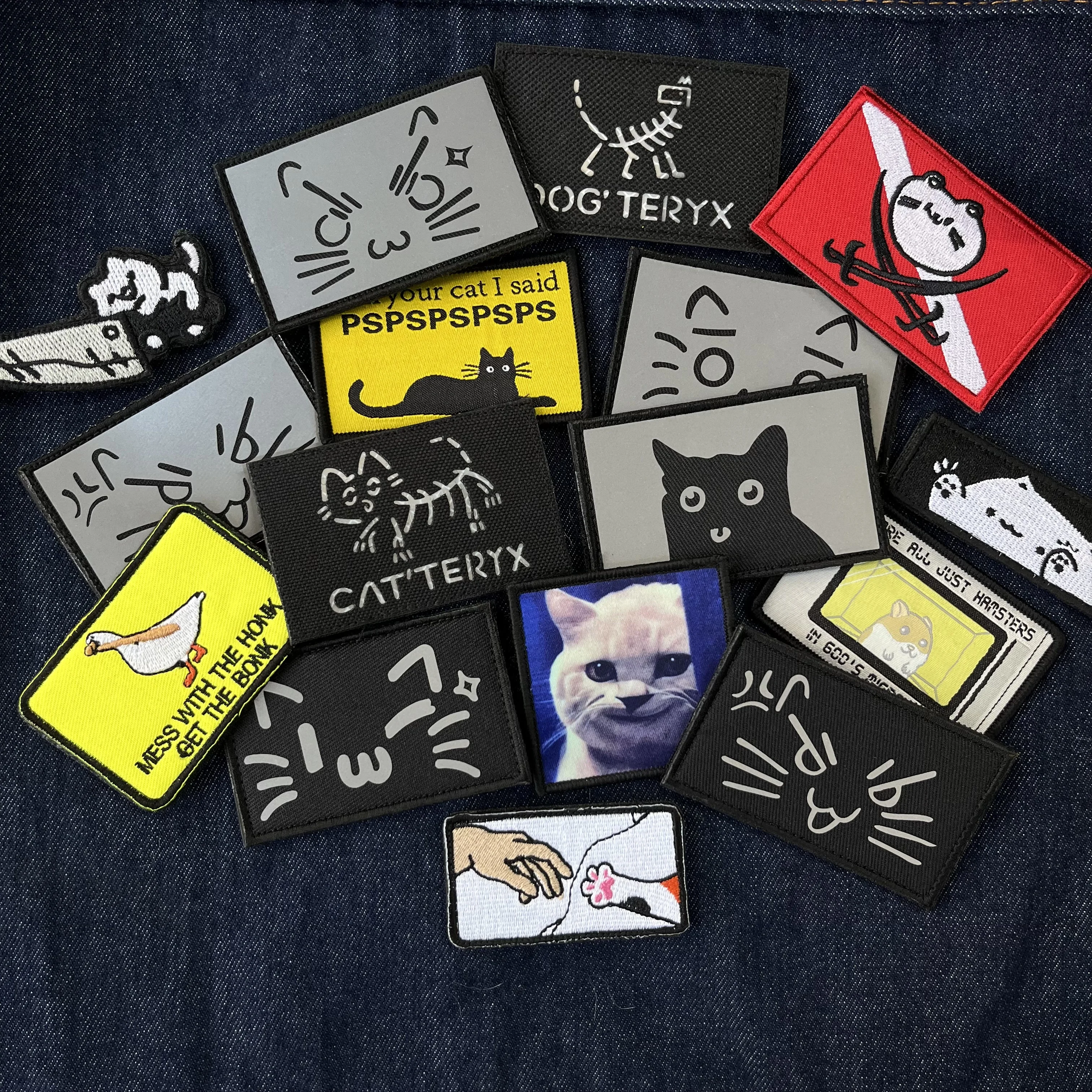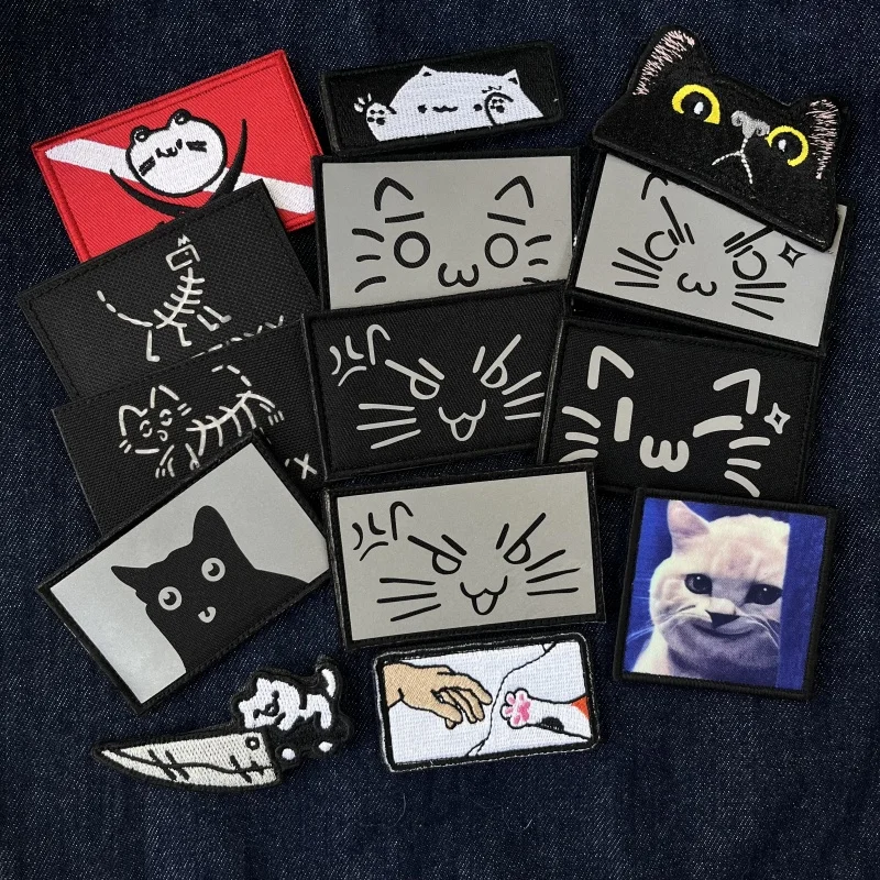 Parches de gancho y bucle bordados reflectantes IR de perro gato de dibujos animados Panda insignia de moral táctico lindos animales para ropa mochila aplique