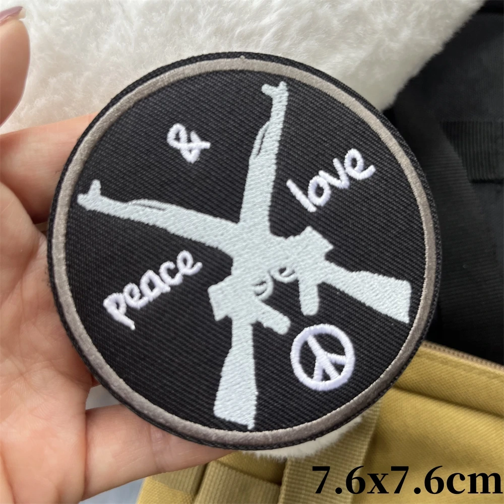Parches bordados de rifle Peace & Love AR, insignia de moral táctica, pegatina de gancho y bucle para mochila