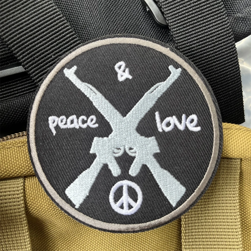 Parches bordados de rifle Peace & Love AR, insignia de moral táctica, pegatina de gancho y bucle para mochila