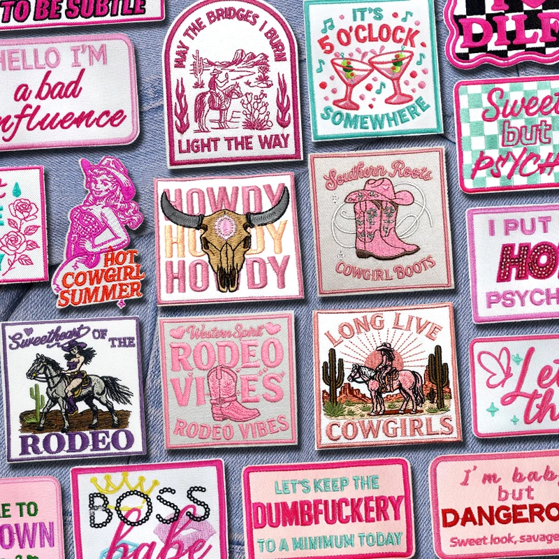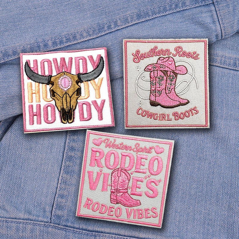 Parches bordados de Rodeo de vaquera, parches de hierro para ropa, parche de dibujos animados, parches de letras rosas en ropa, sombreros, pantalones vaqueros DIY
