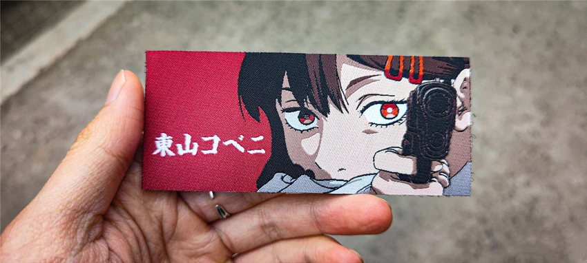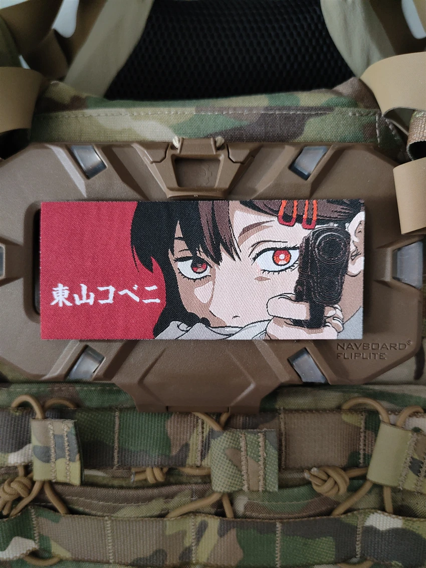 Parches bordados rojos de motosierra para hombre, Higashiyama, cazador de demonios, brazalete táctico militar DIY para ropa, mochila