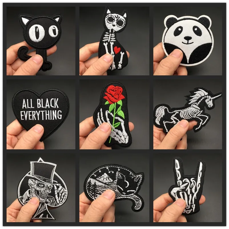 Parches bordados para ropa en blanco y negro, parche Punk para ropa, pegatina para ropa, apliques, insignias de costura decorativas