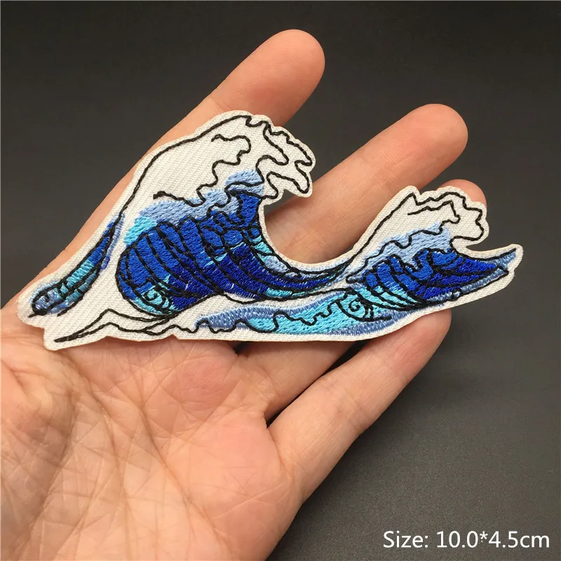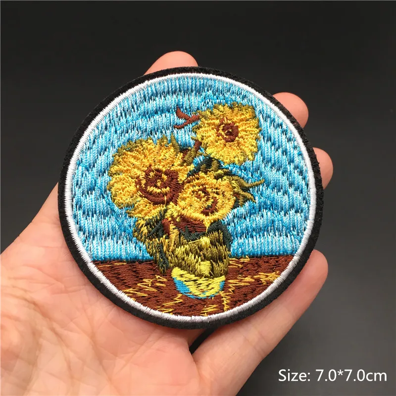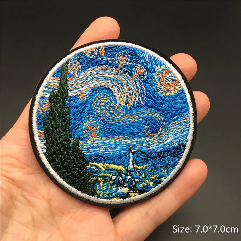 Parches bordados para ropa, parche de hierro para acampar, apliques Punk DIY, pegatinas para ropa, rayas onduladas de montaña y noche de estrellas de Van Gogh