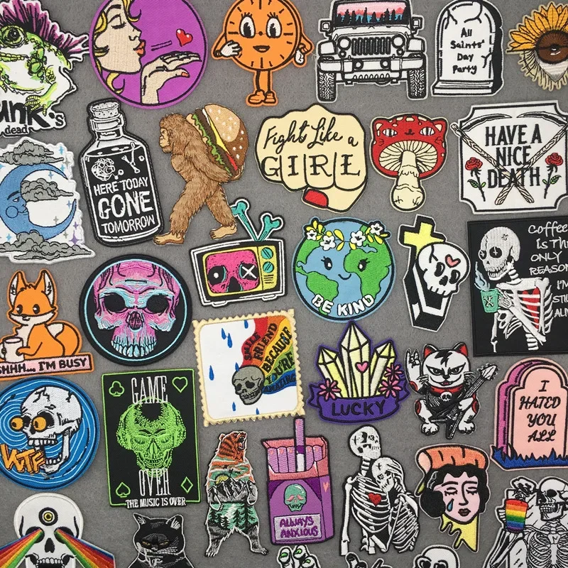 Parches bordados en ropa Parches punk para ropa DIY Pegatinas de rayas de calavera Parches de dibujos animados Apliques Insignias