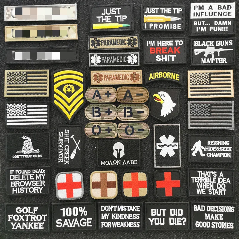 Parches bordados para ropa Parches tácticos Pegatinas en insignias de ropa Texto en blanco y negro Rayas Gancho Bucle