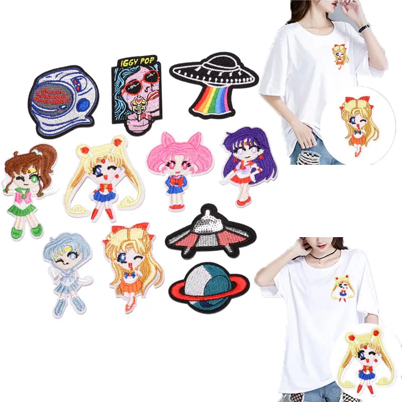 Parches bordados para ropa y bolsas, pegatinas decorativas para planchar, bonito guerrero de chica, Boutique, DIY
