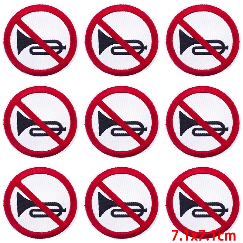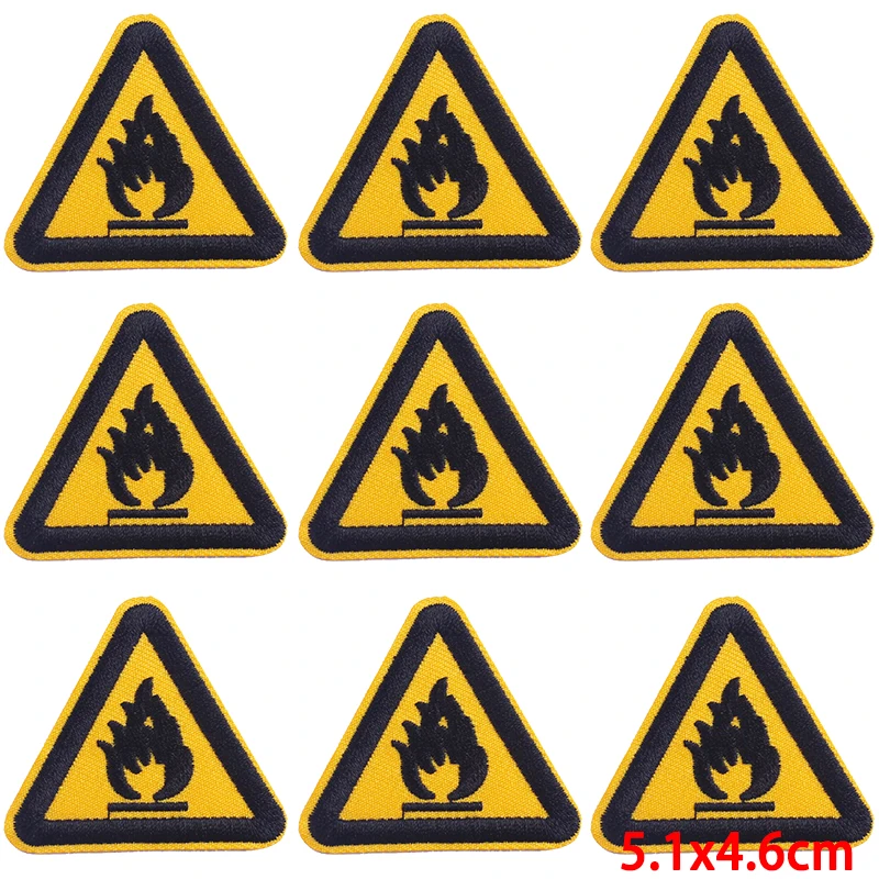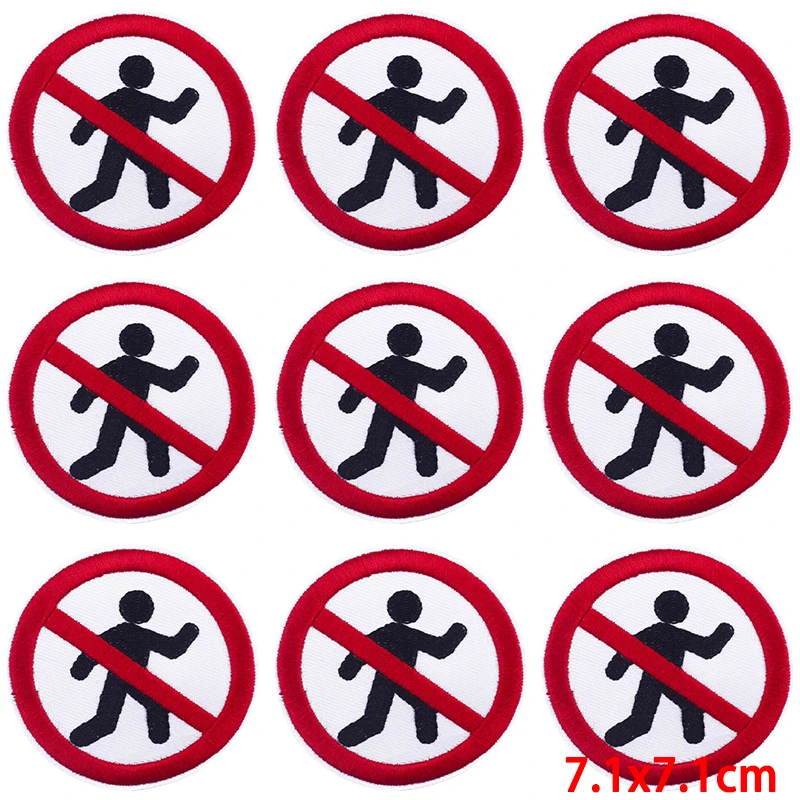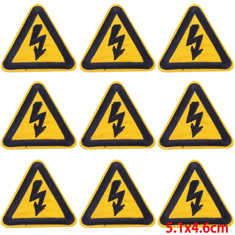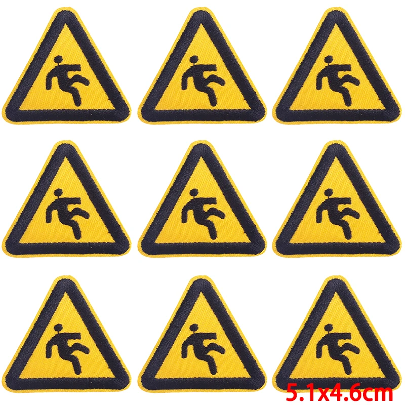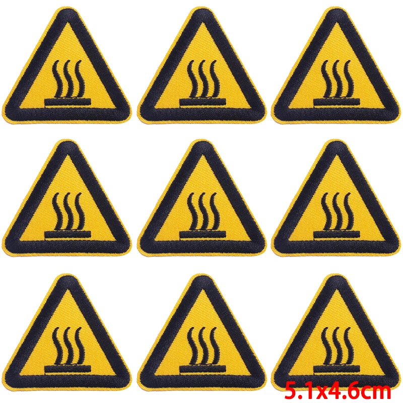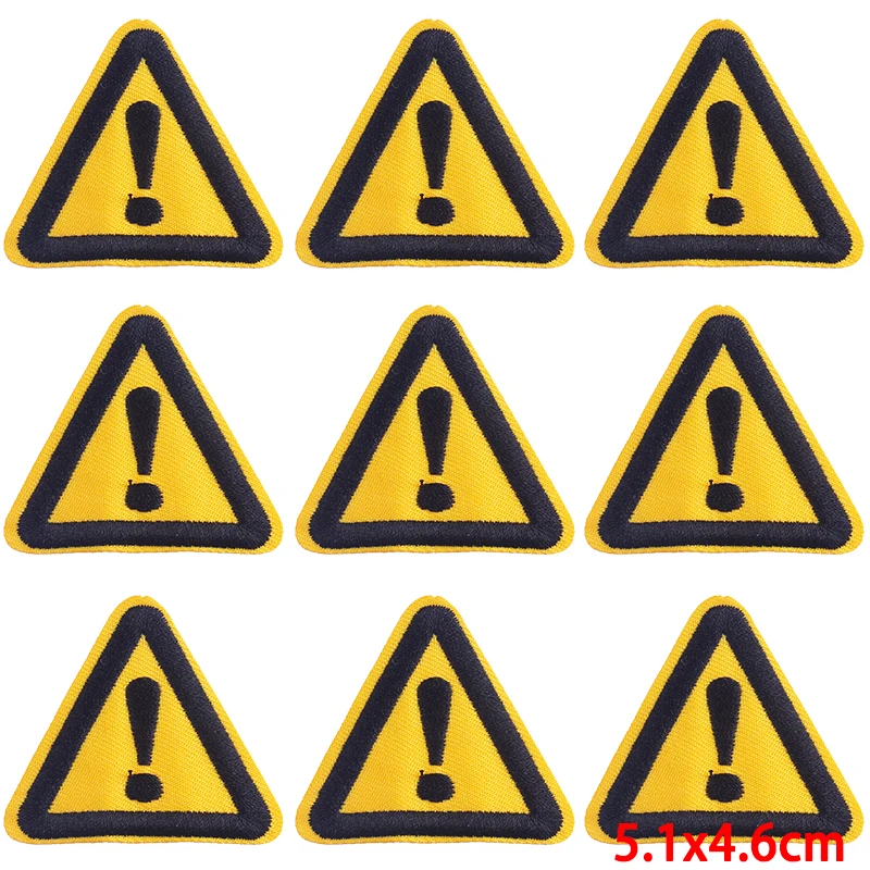 10 unids/lote de parches bordados de señal de advertencia para ropa, Parche de peligro, parches para planchar en la ropa, Parche de prohibición para insignias de ropa