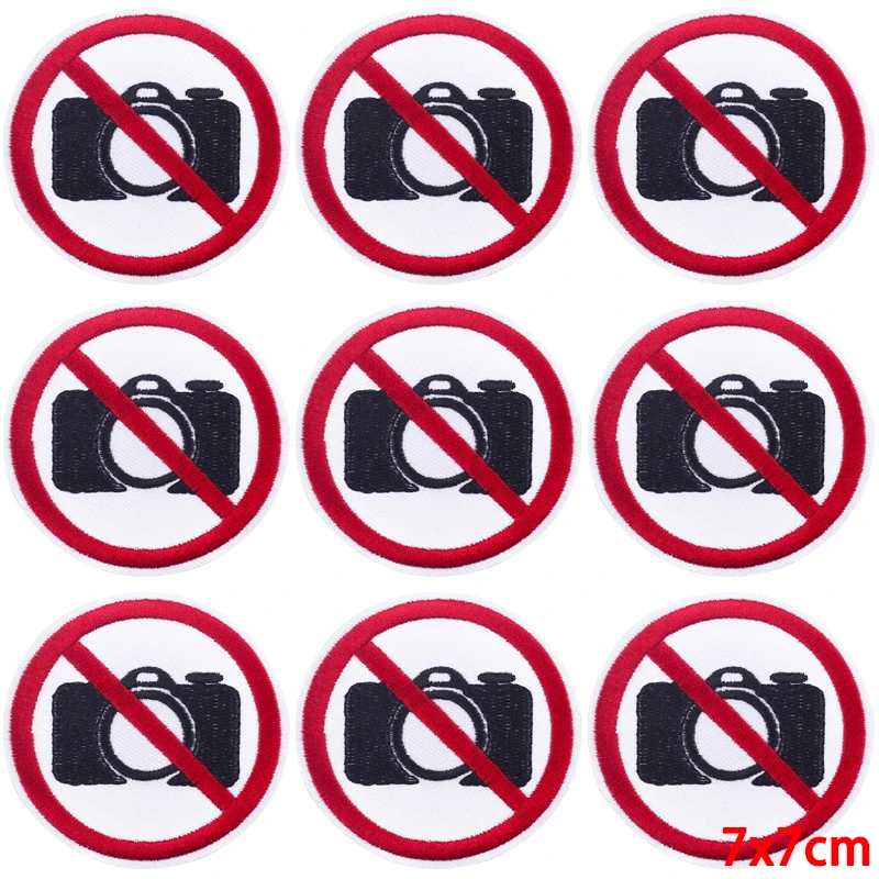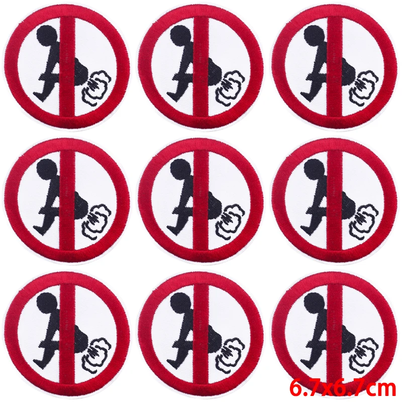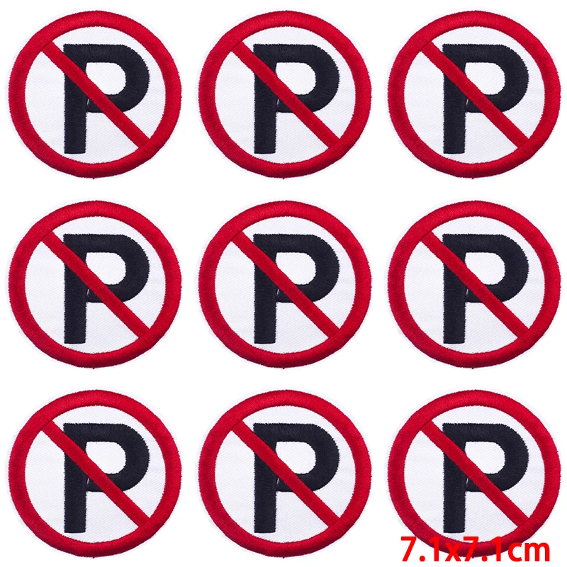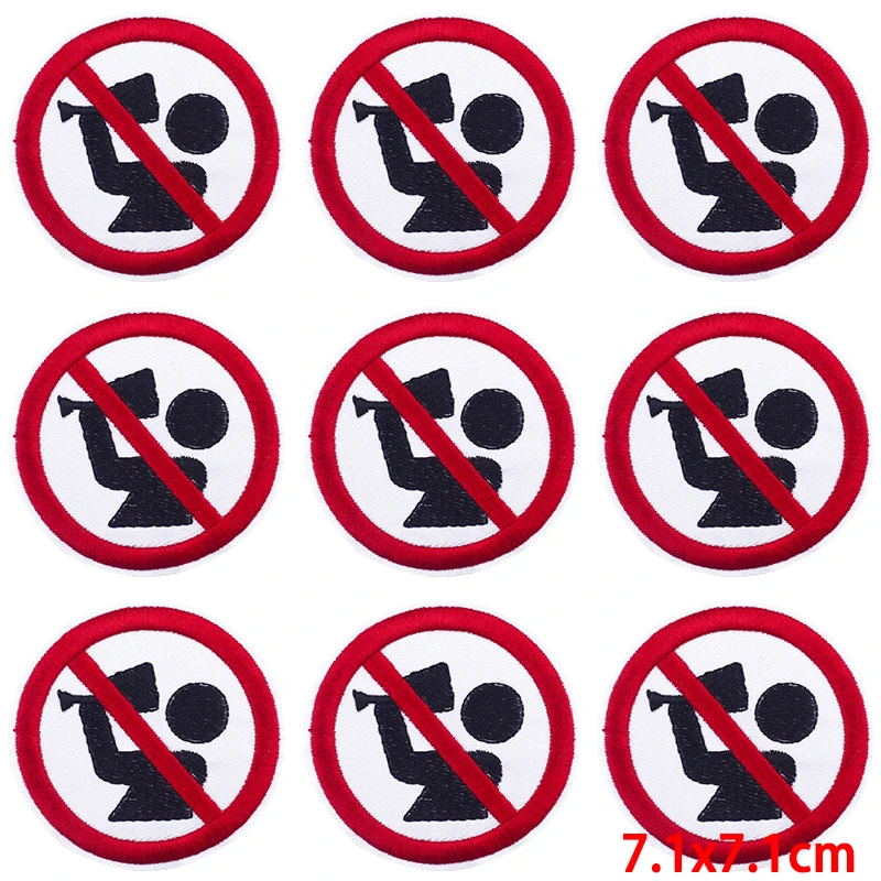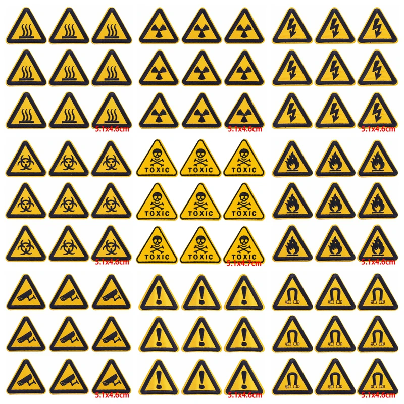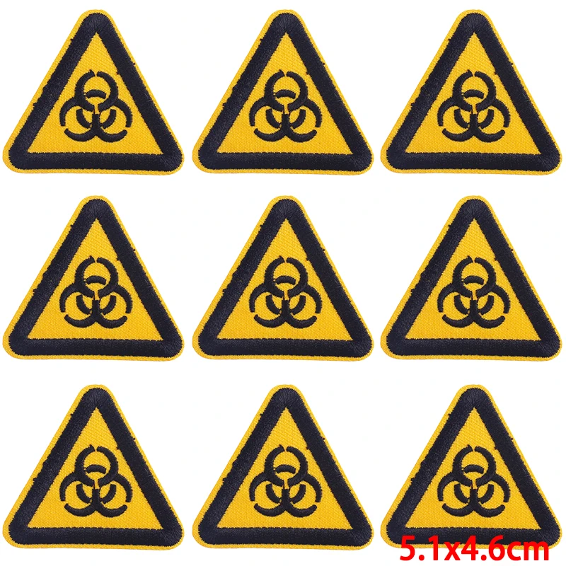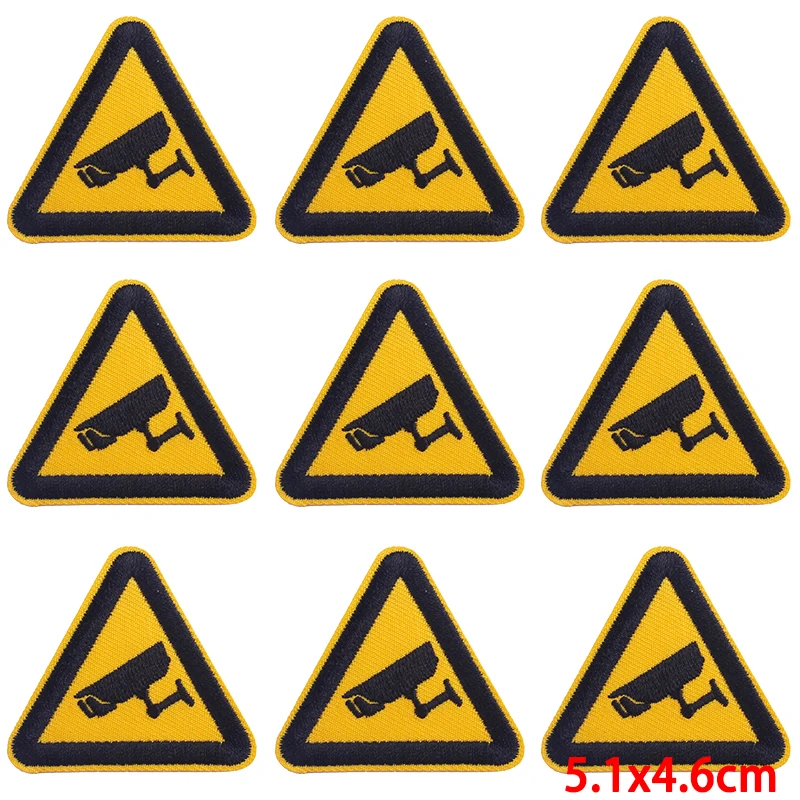 10 unids/lote de parches bordados de señal de advertencia para ropa, Parche de peligro, parches para planchar en la ropa, Parche de prohibición para insignias de ropa