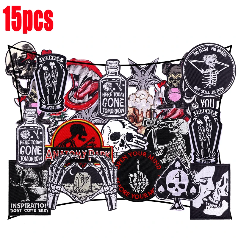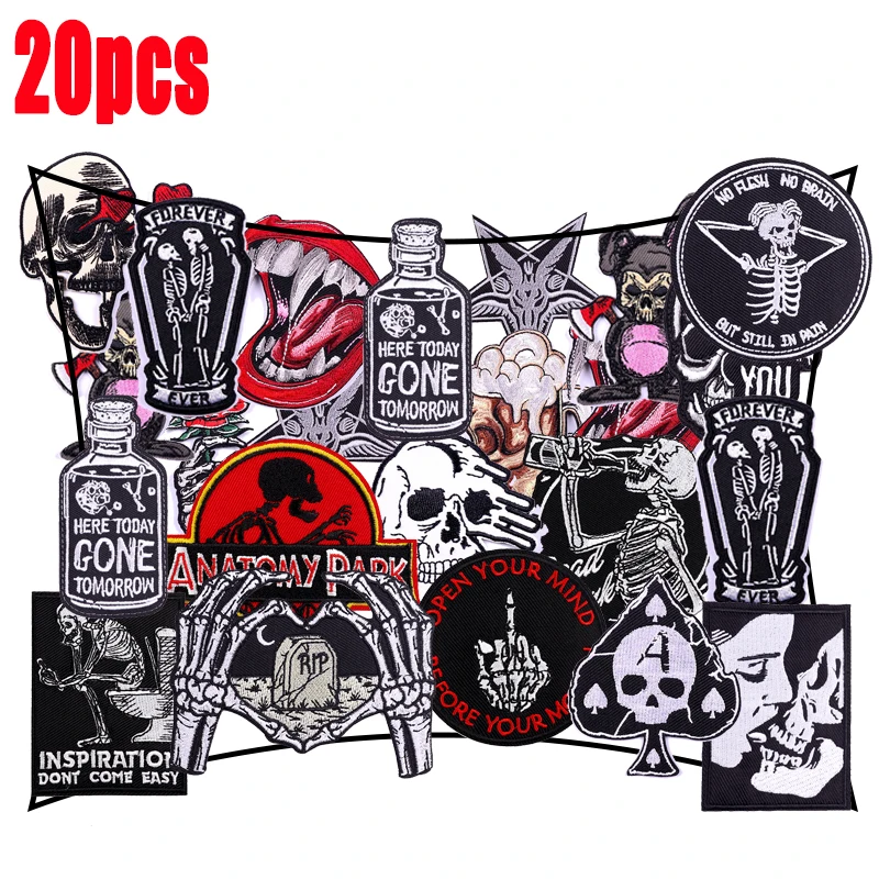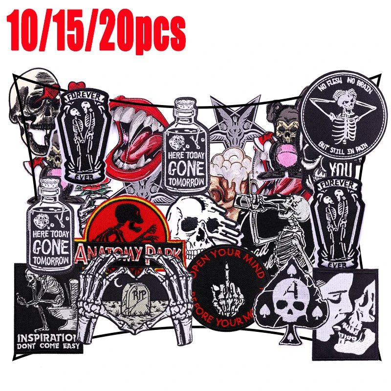 Parches bordados de la serie Punk negra, parches aleatorios DIY, cráneo lron de alta calidad para decoración de ropa, 10/15/20 piezas