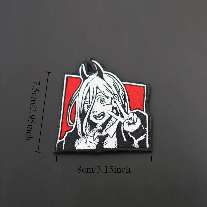 Parches bordados de Anime Pawa en la mochila, emblema, cierre de gancho y bucle, sierra eléctrica, insignia de moralidad para hombre, brazalete para pegatinas de ropa