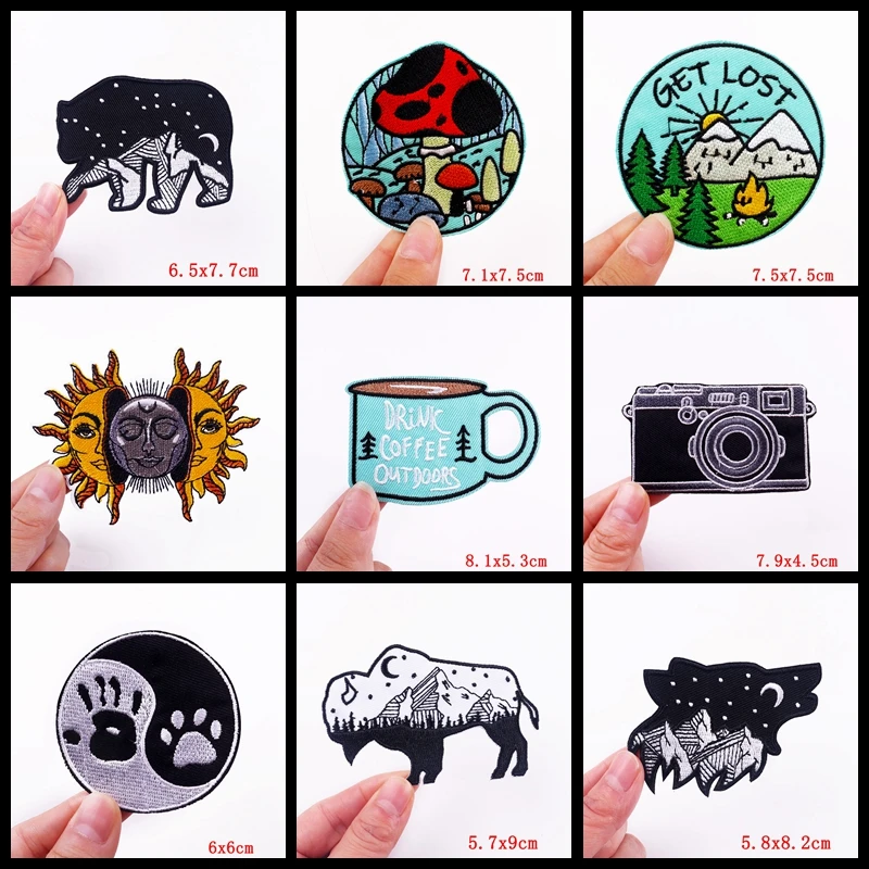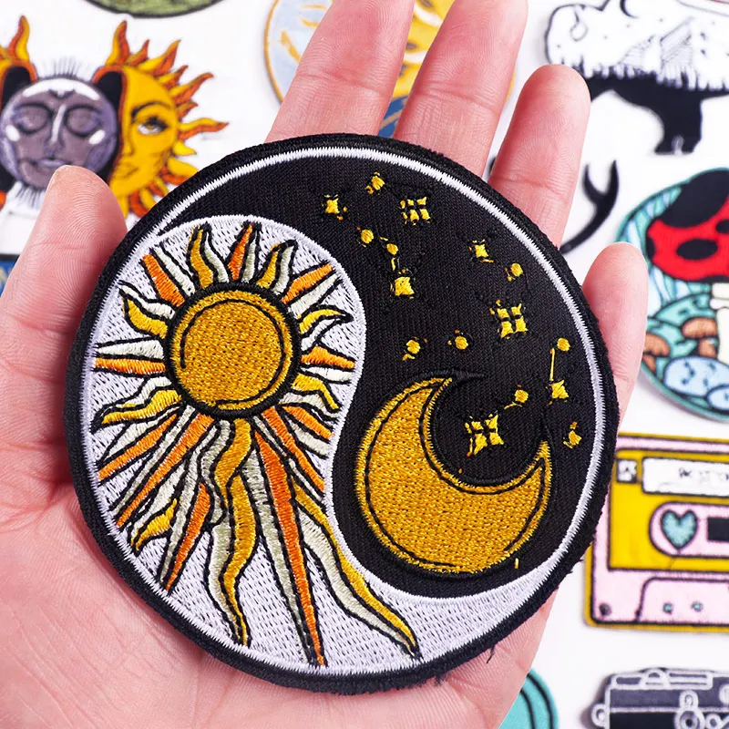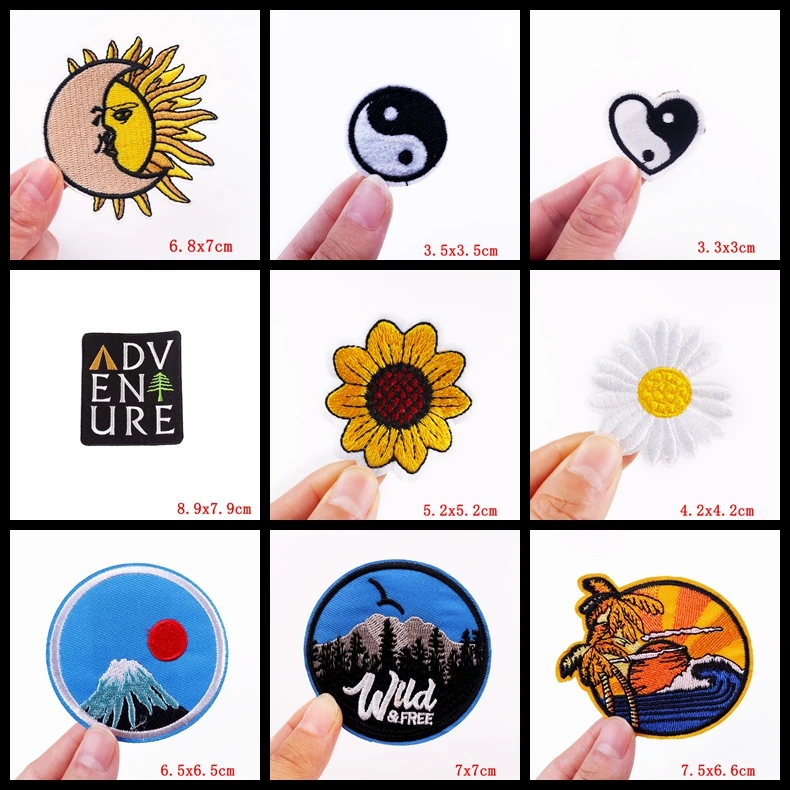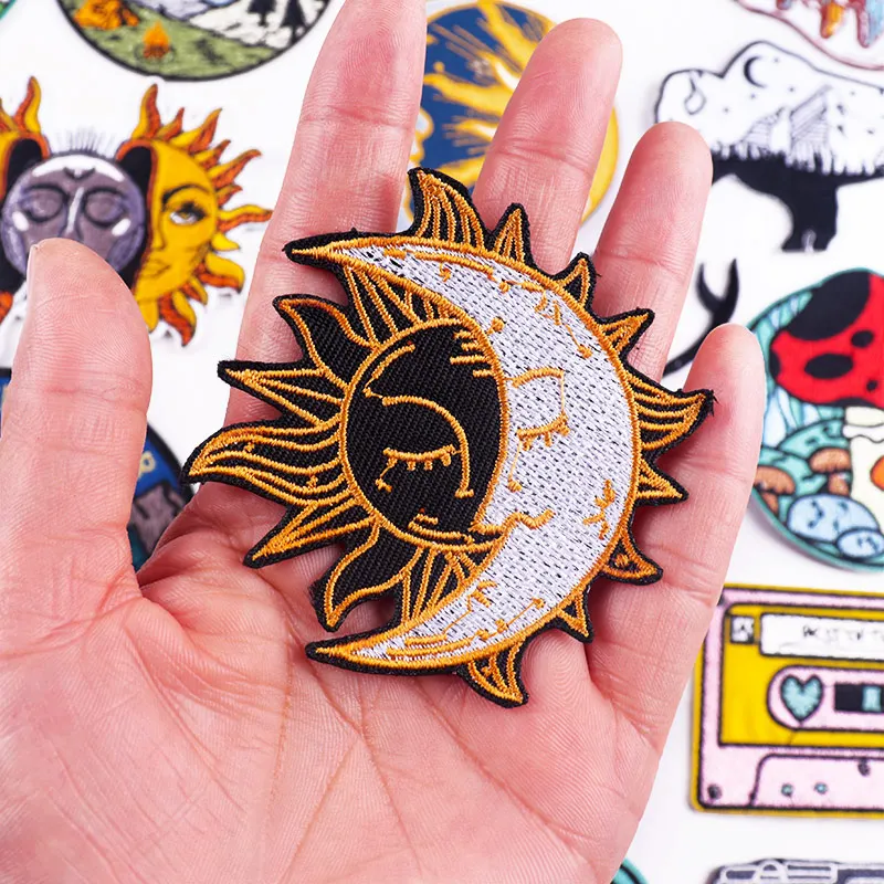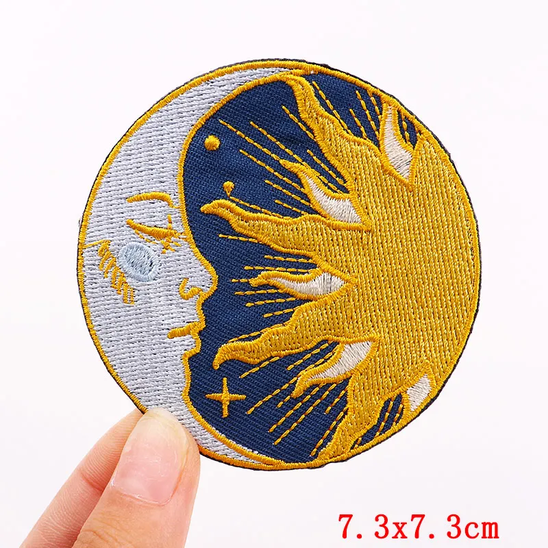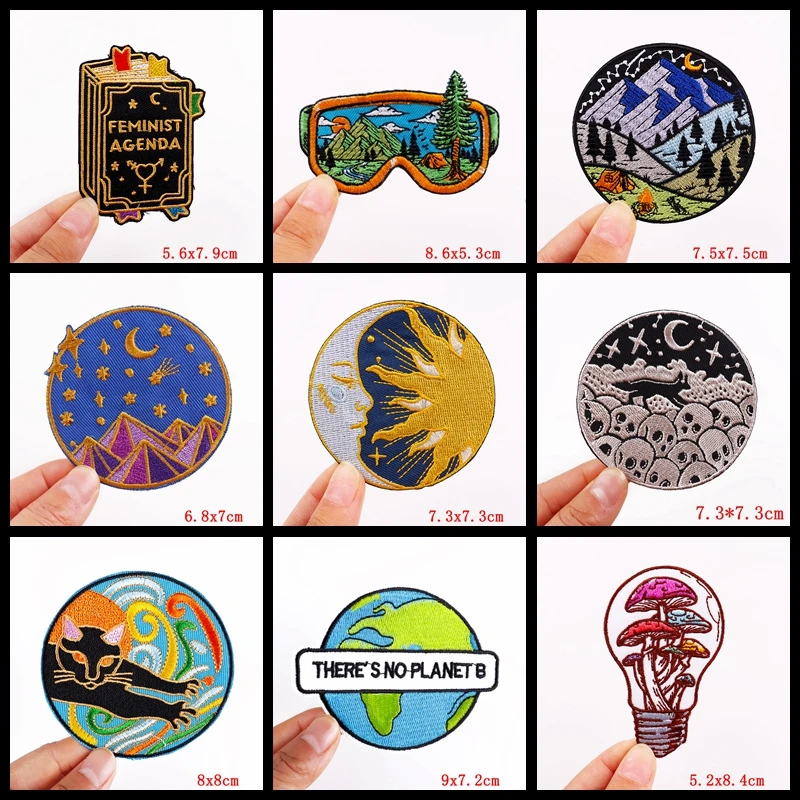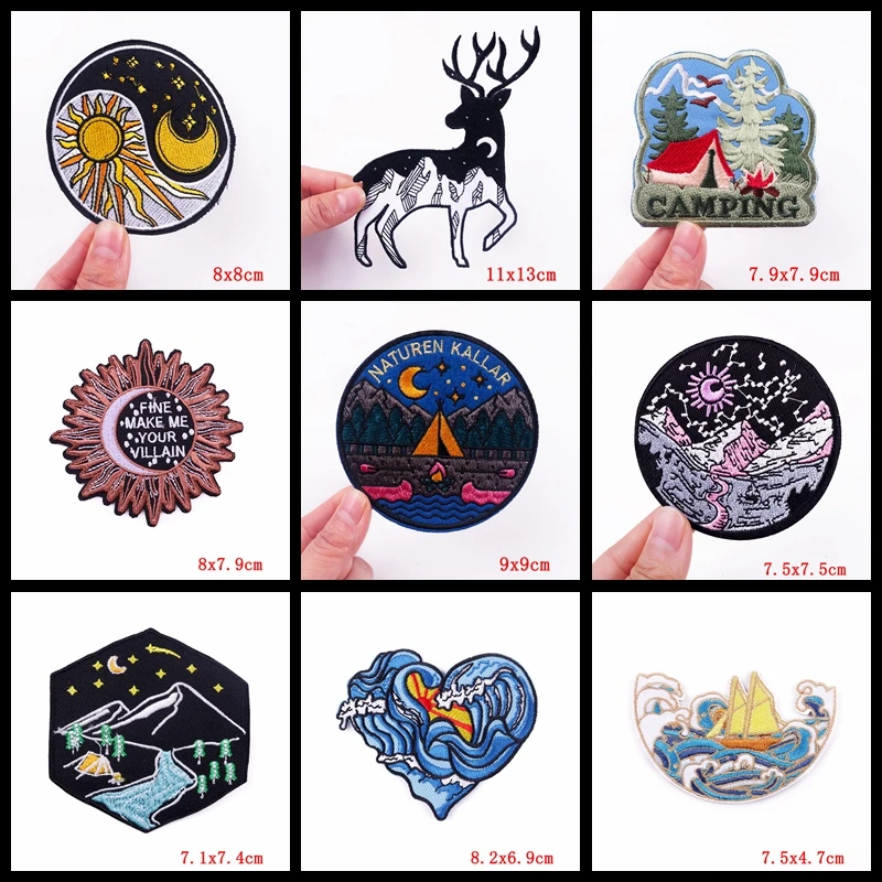 Parches bordados de sol en la ropa DIY Outdoot montañas apliques parches para ropa espacio naturaleza aventura hierro en parches