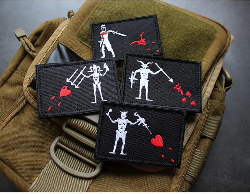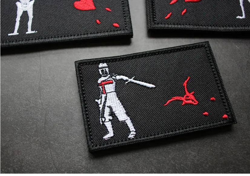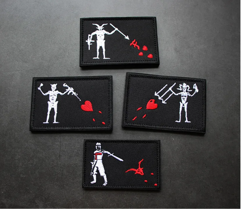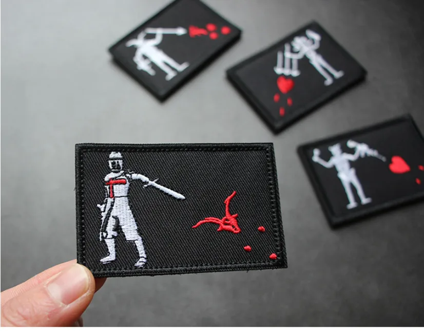 Parches bordados de soldados piratas de Barbanegra AK, corazón de amor rojo, Cruzada, Tridents, Edward, brazalete delantero, insignia táctica