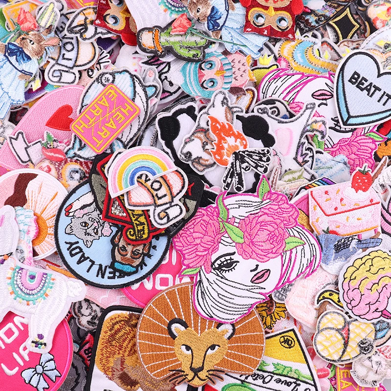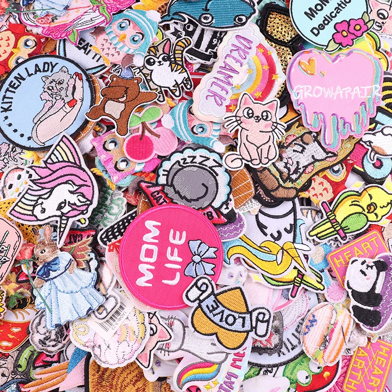 Parches bordados tácticos aleatorios para ropa, apliques bonitos de dibujos animados, insignias de emblema, 10/20/30/40/50 piezas
