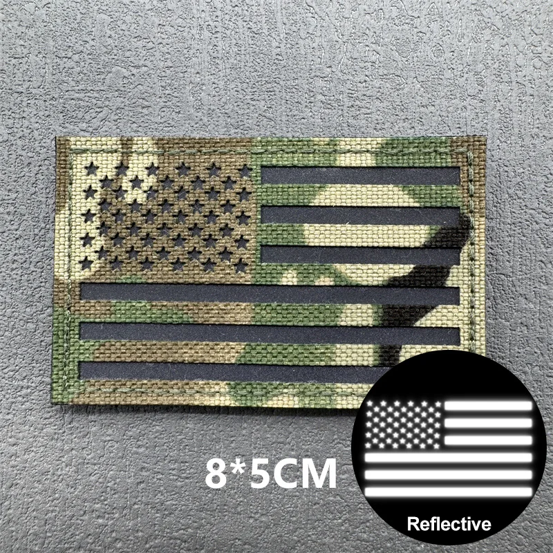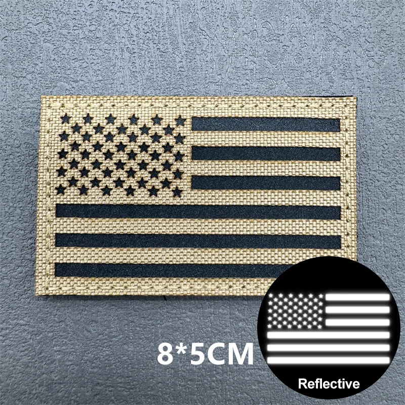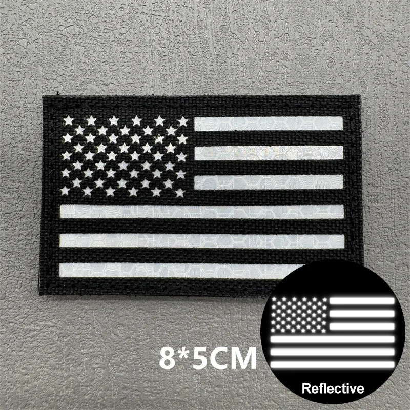 Parches bordados tácticos con bandera de EE. UU., insignias de moral reflectantes para brazalete, chaleco, mochila, lazo de gancho a rayas