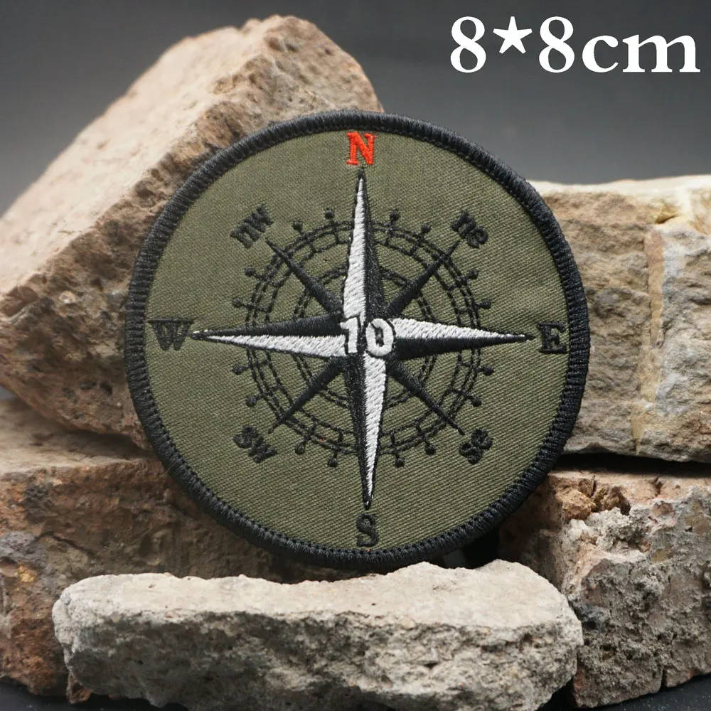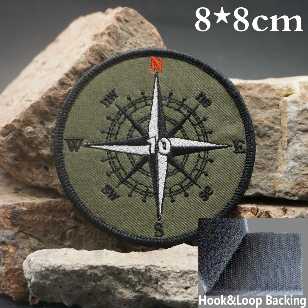 Parches bordados tácticos con brújula para mochilas y ropa, accesorios militares con respaldo de gancho o planchado