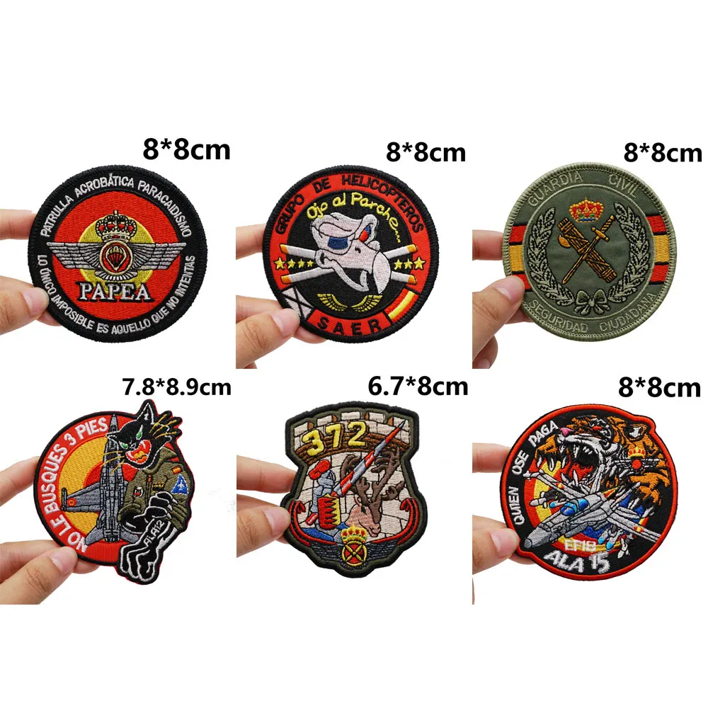 Parches bordados tácticos españoles con respaldo de gancho y bucle para mochilas, ropa, accesorios militares