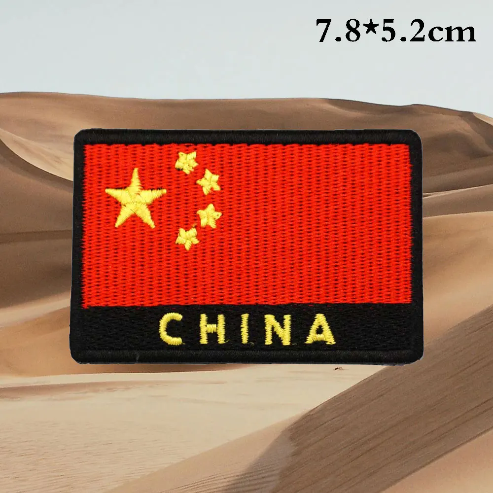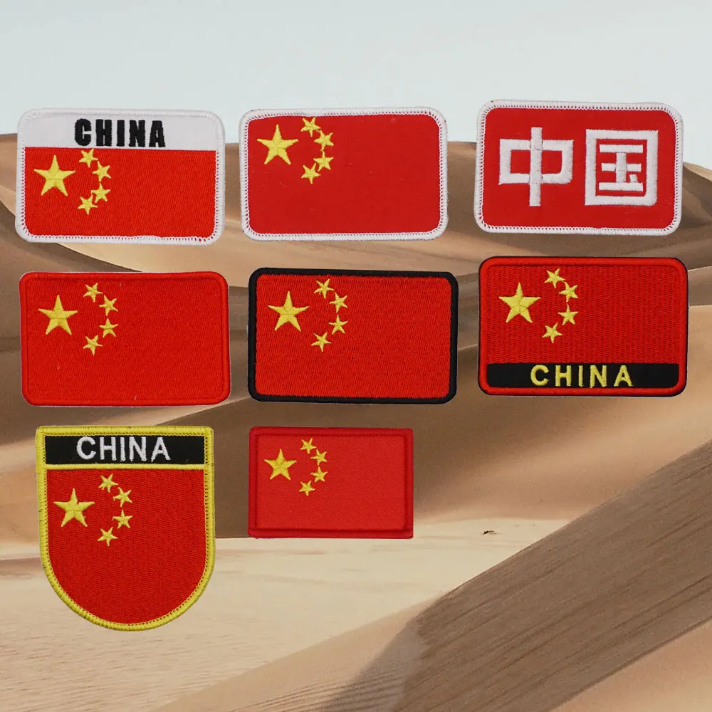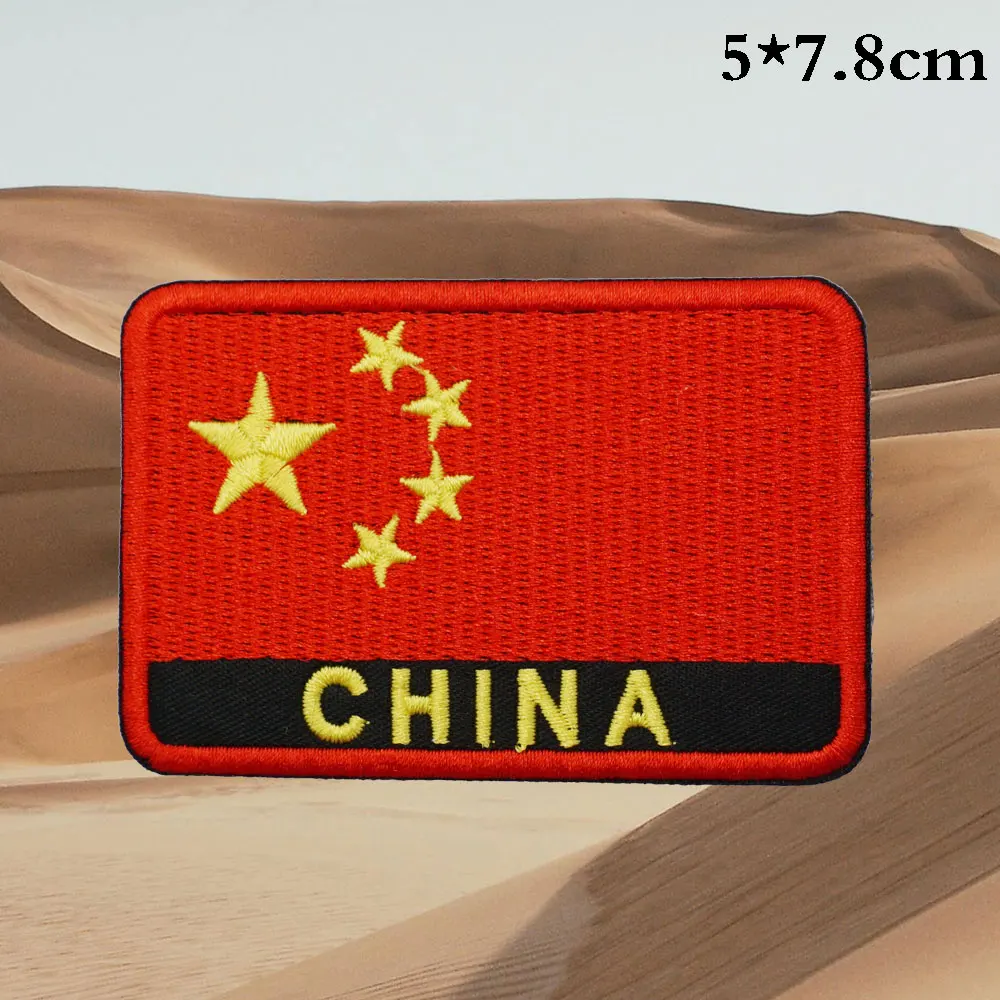 Parches bordados tácticos de la bandera de China para mochilas y ropa, accesorios militares con respaldo de gancho o planchado