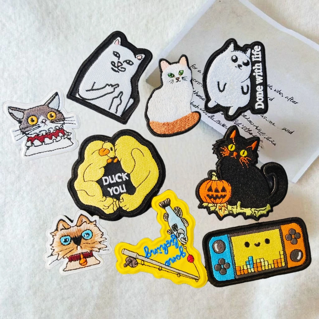 Parches bordados tácticos militares de gato lindo de Halloween, brazalete de construcción corporal de pato, mochila, sombreros, insignia, pegatinas, apliques
