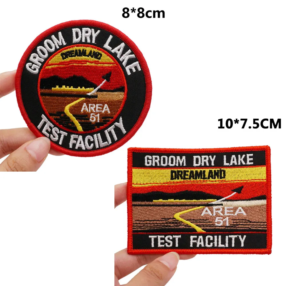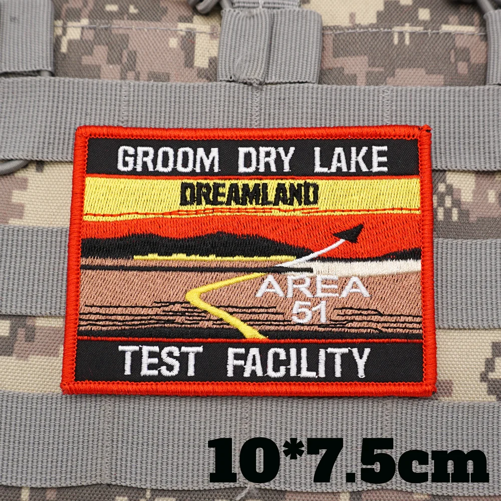 Parches bordados tácticos para mochilas y ropa, accesorios militares con gancho trasero, área de lago seco para novio, estructura 51
