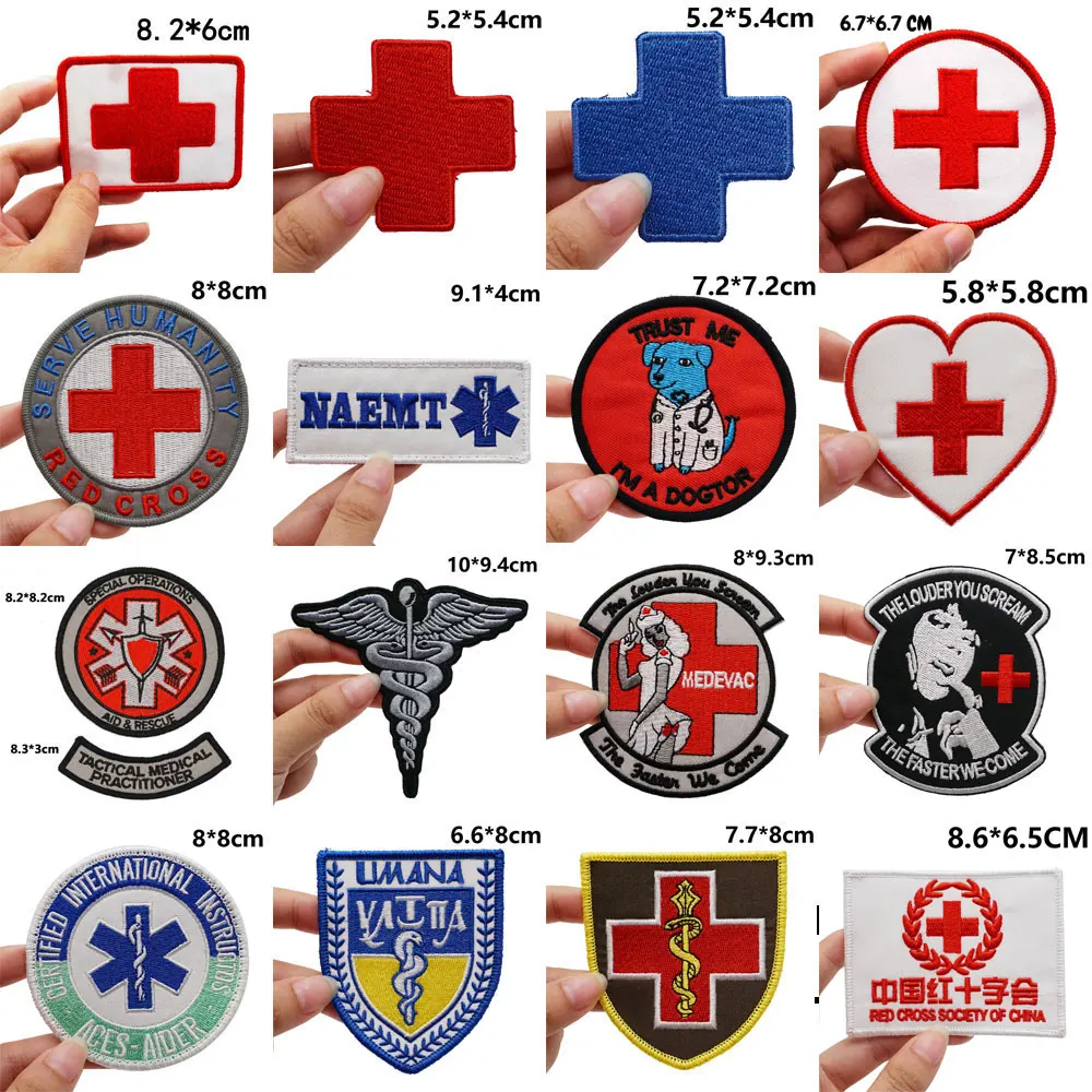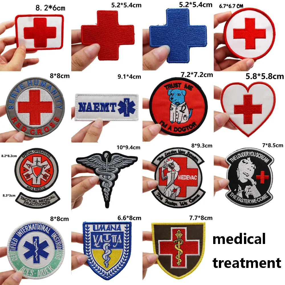 Parches bordados tácticos de tratamiento médico para mochilas y ropa, accesorios militares con respaldo de gancho o parte trasera de hierro
