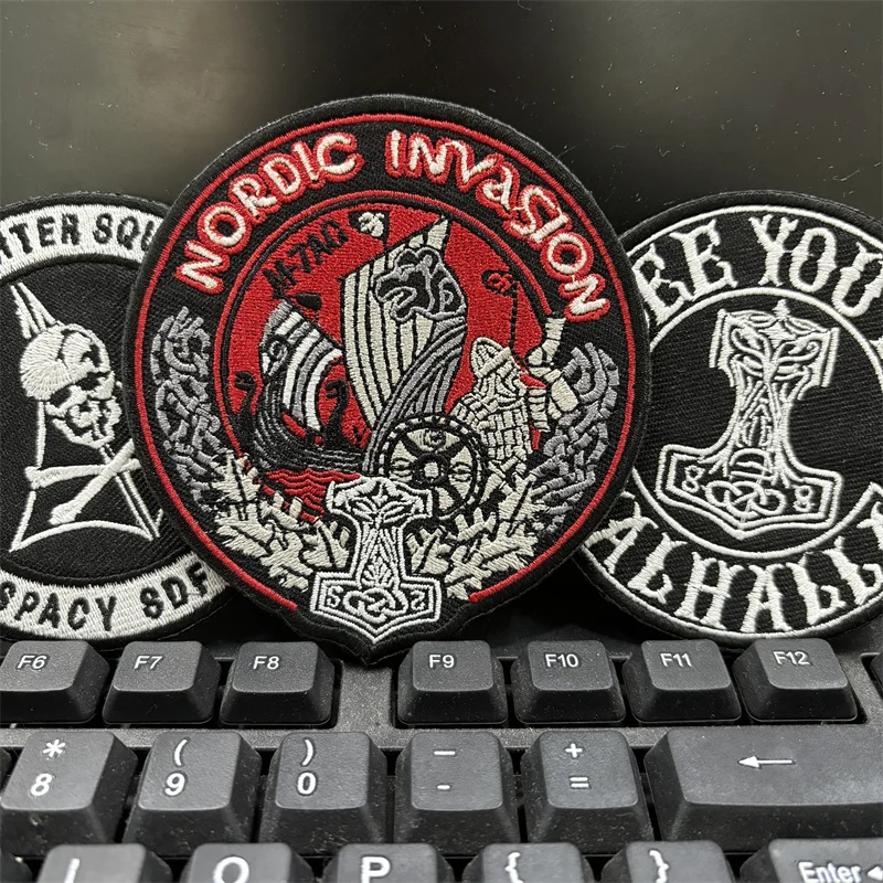 Parches de bordado táctico vikingo Parche de gancho y bucle Nos vemos en Valhalla Insignia de moral Brazalete militar de invasión nórdica en la mochila