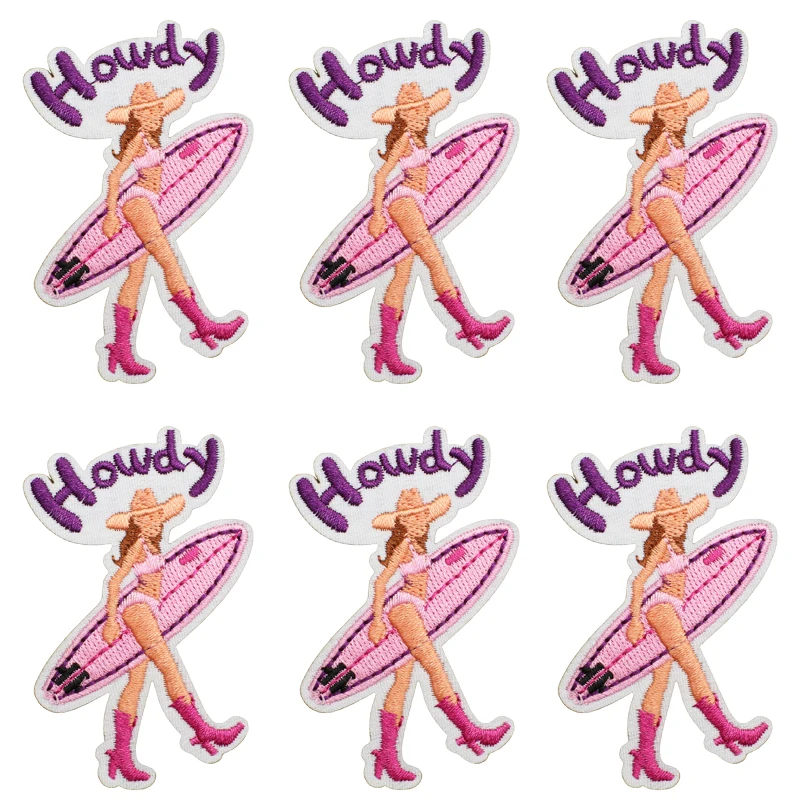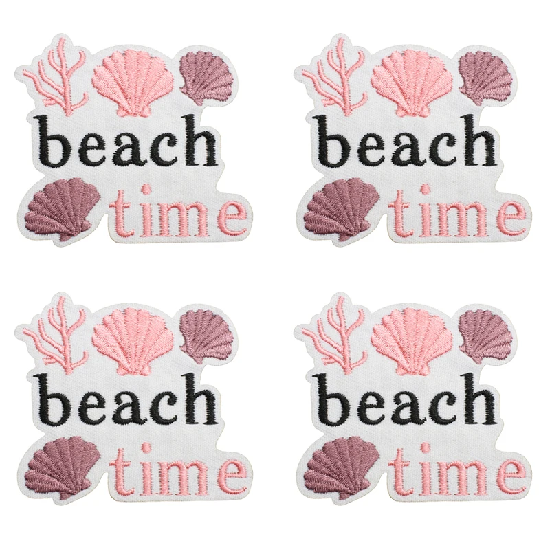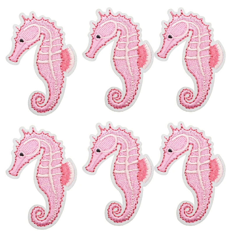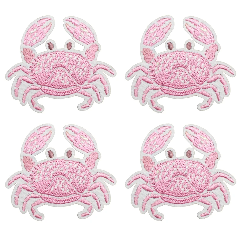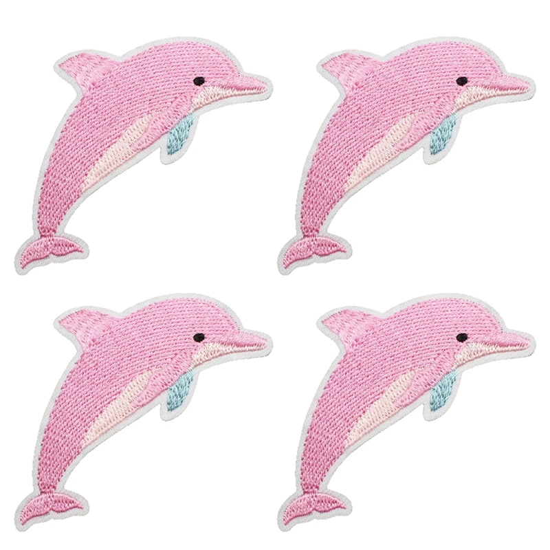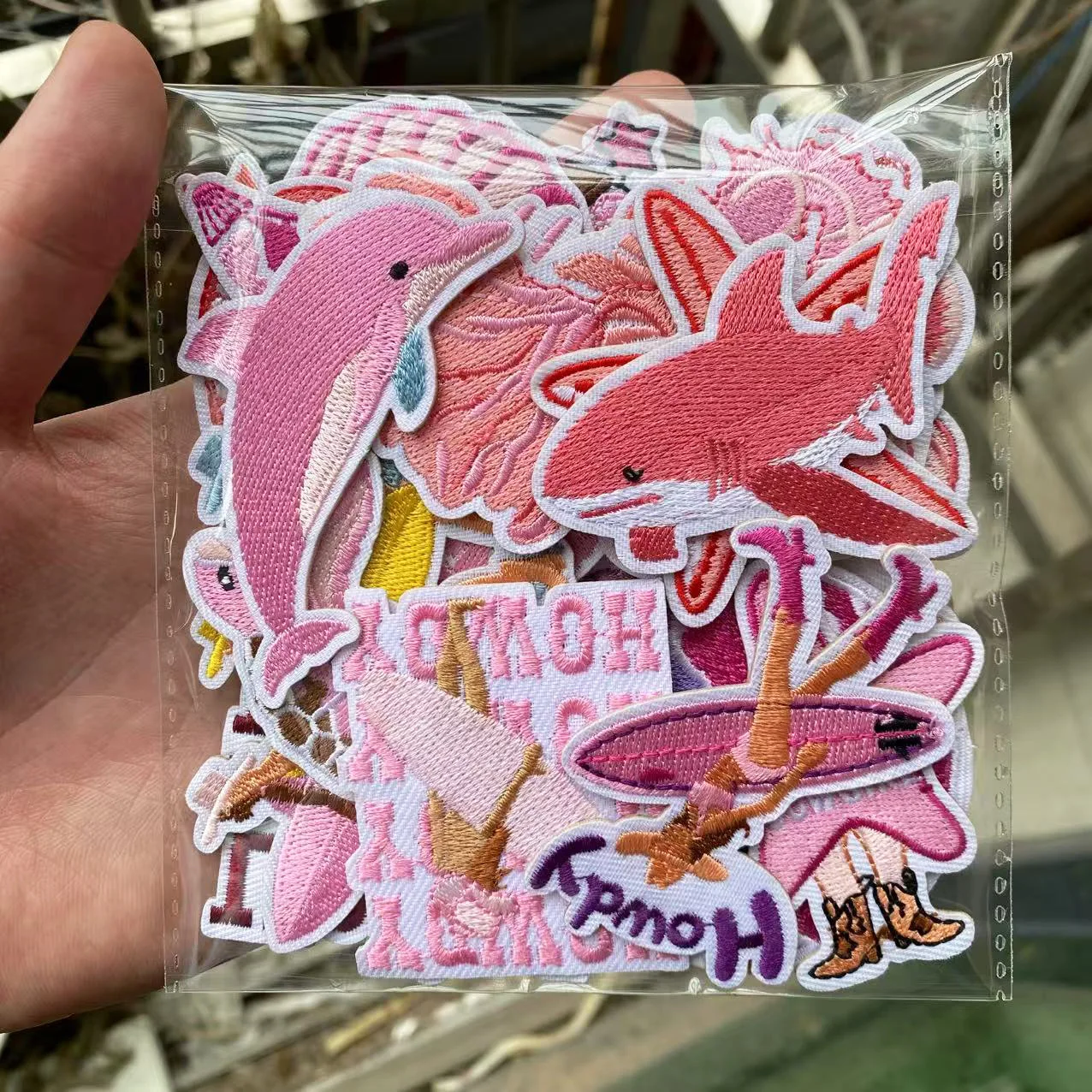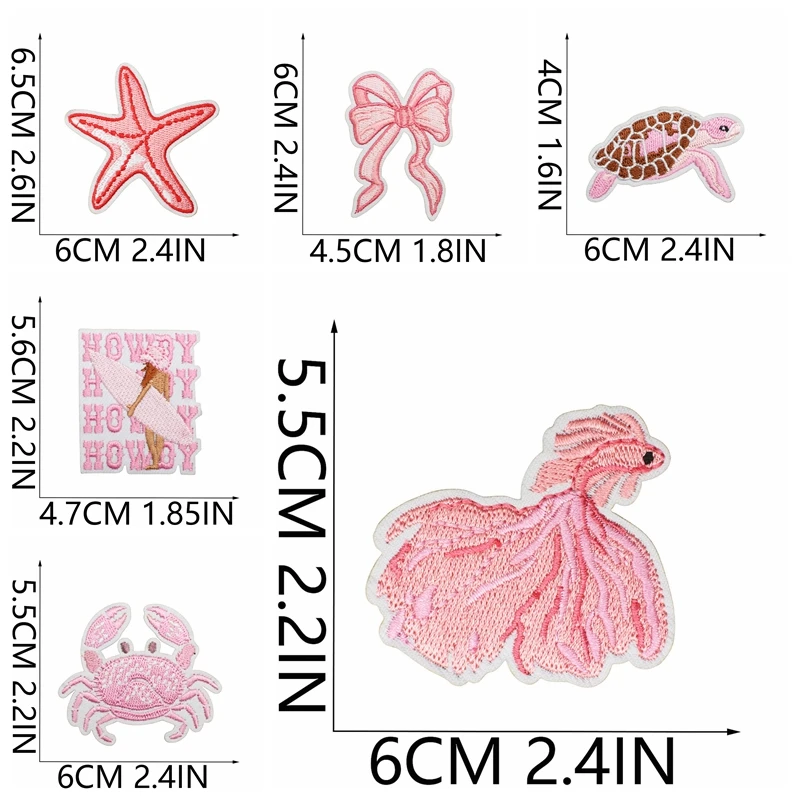 Parches bordados con tema rosa de dibujos animados/surf para niñas, insignias bordadas de cangrejo, tortuga y delfines, parches de hierro para sombreros, chaquetas DIY