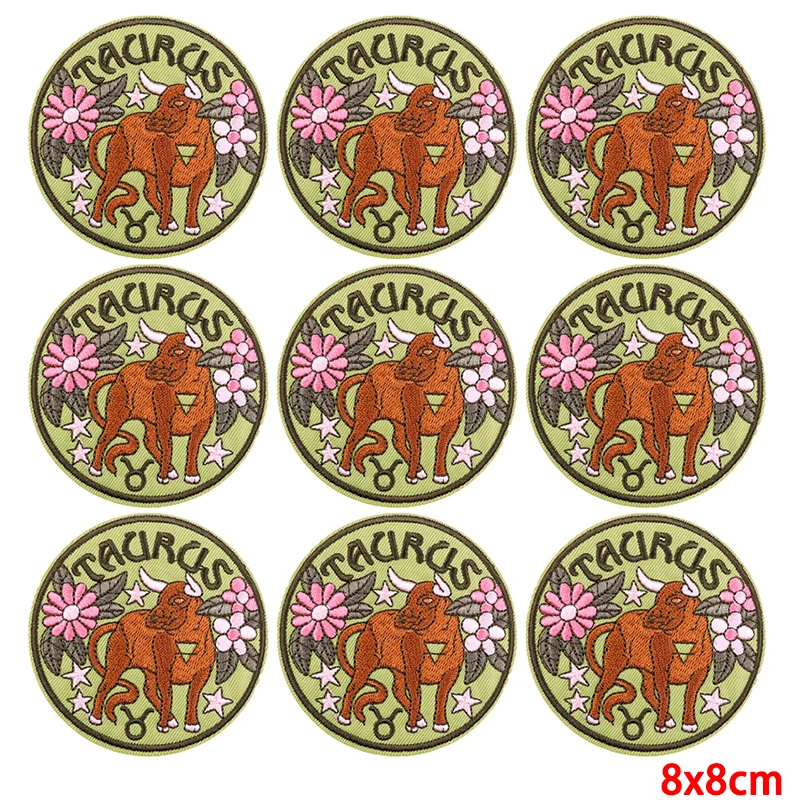 10 unids/lote doce constelaciones parche hierro en parches bordados para ropa parche termoadhesivo para Ropa Decoración de forma redonda