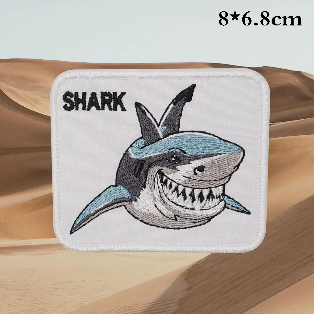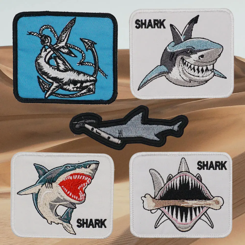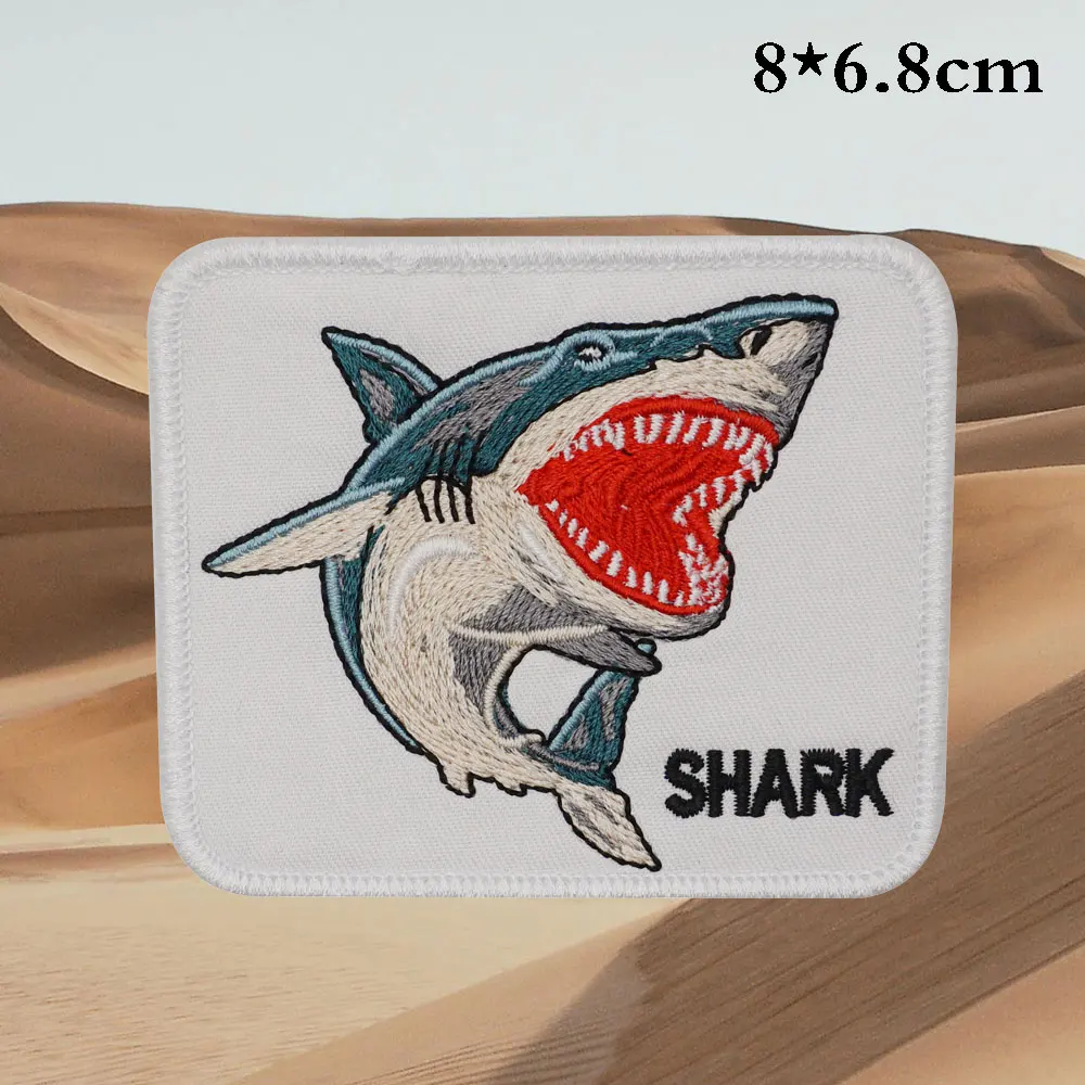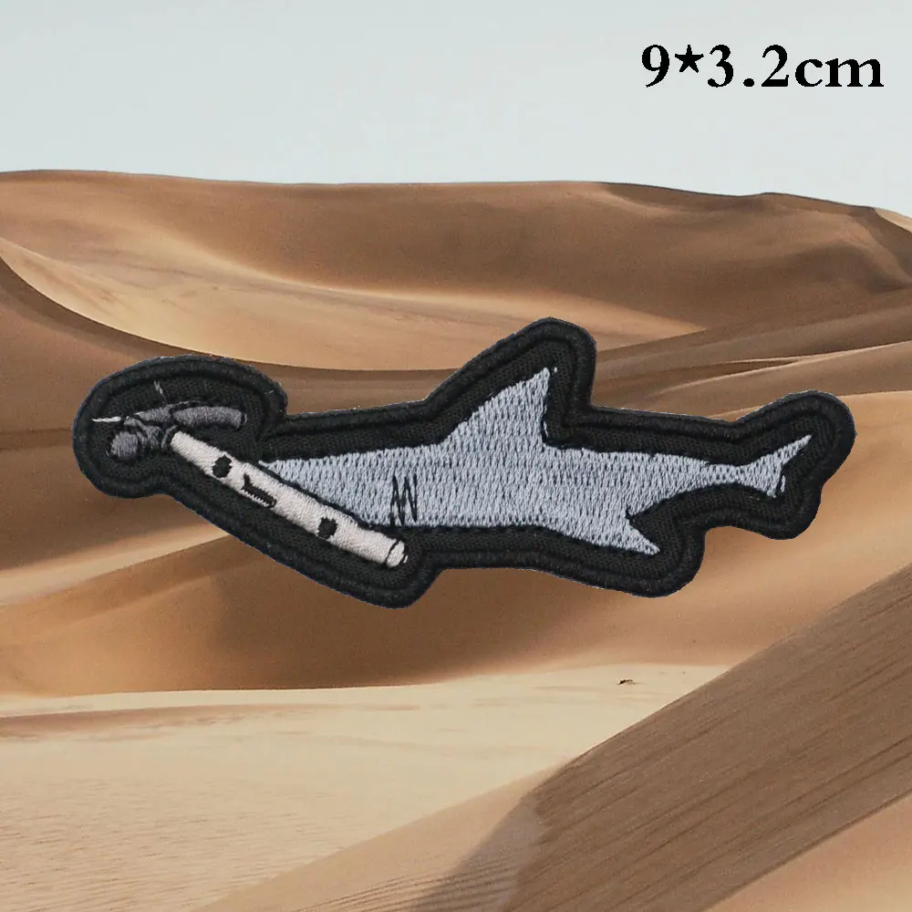 Parches bordados de tiburón, aplique de etiqueta de costura, banda de motorista punk, insignia de ropa de Rock con respaldo de gancho o coser