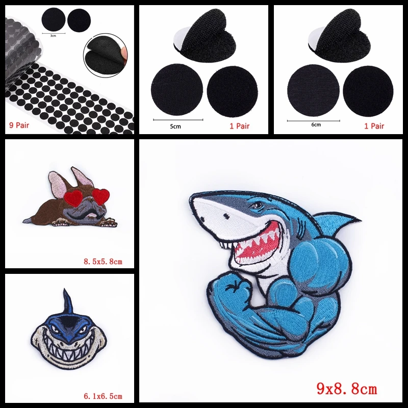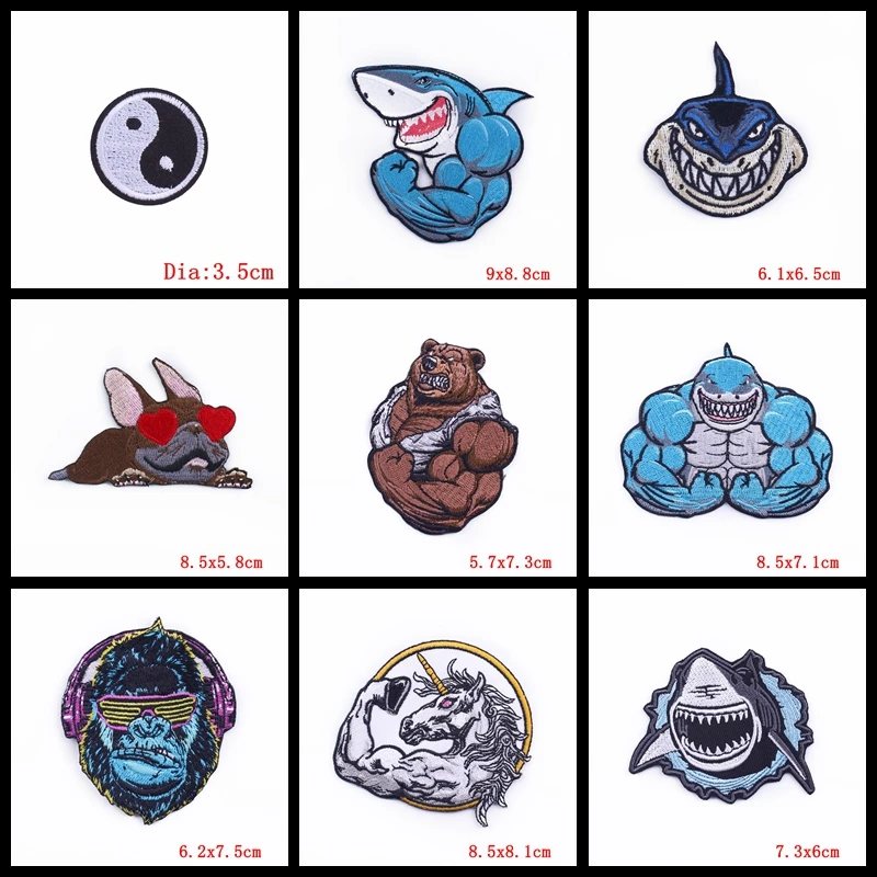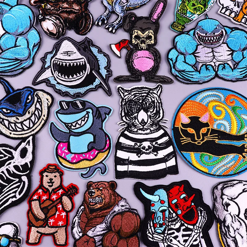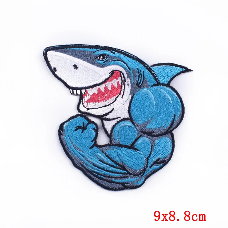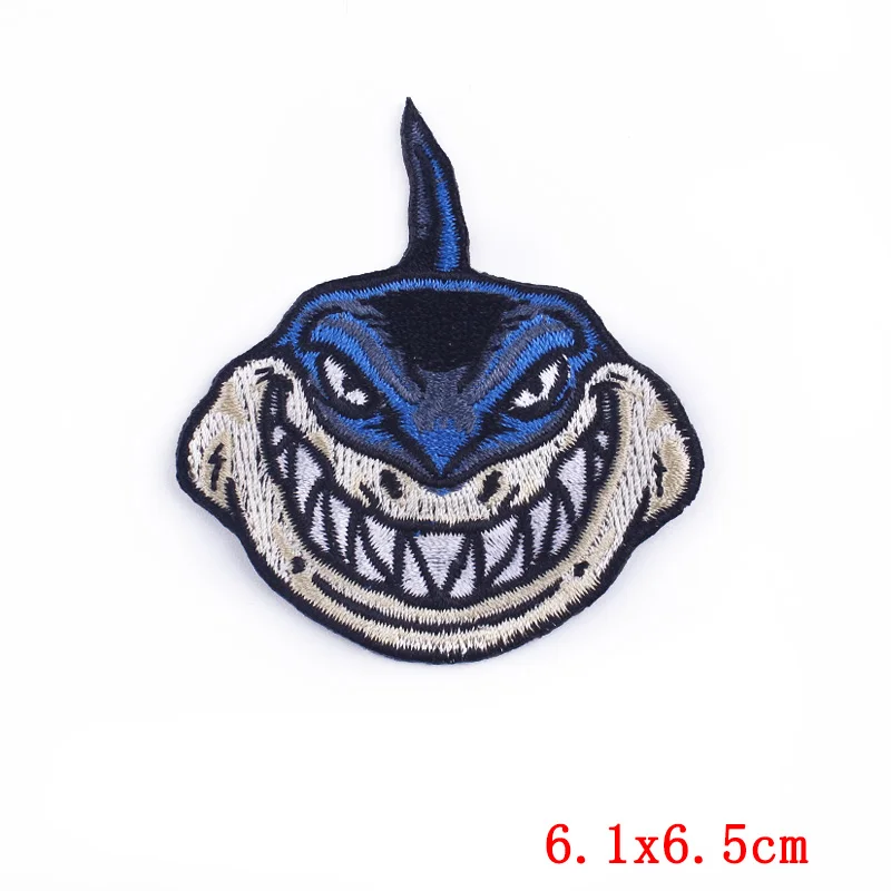 Parches bordados de tiburón Prajna Rock para ropa, parches de animales Punk con gancho para ropa, pegatinas, insignias de parche de costura de dibujos animados