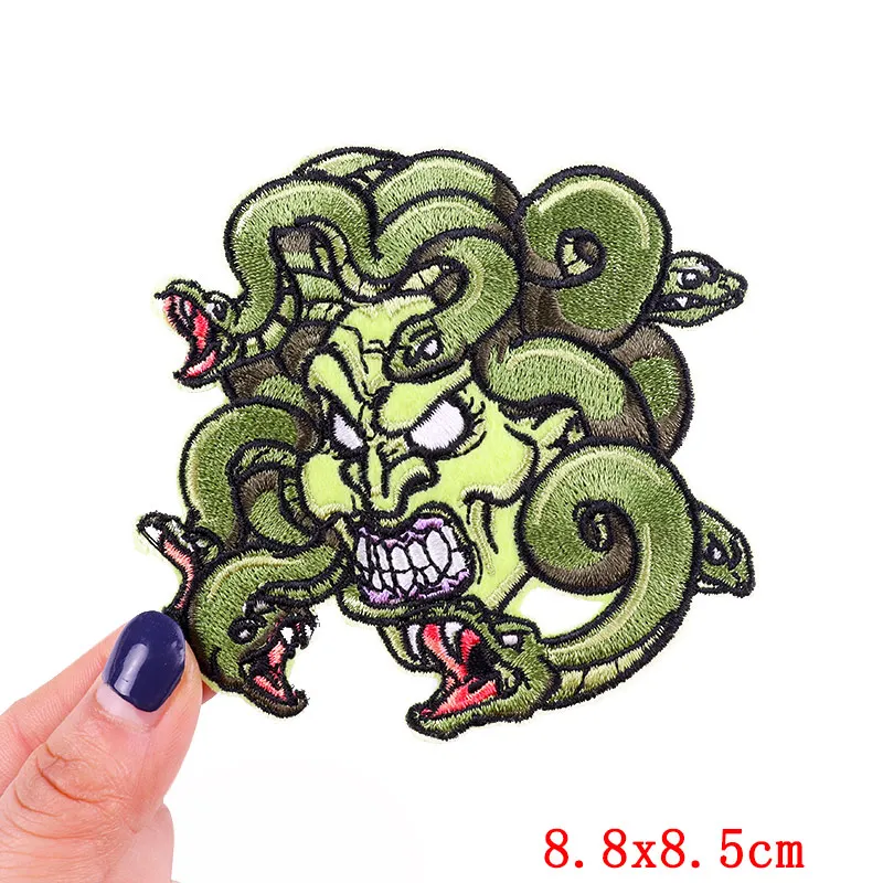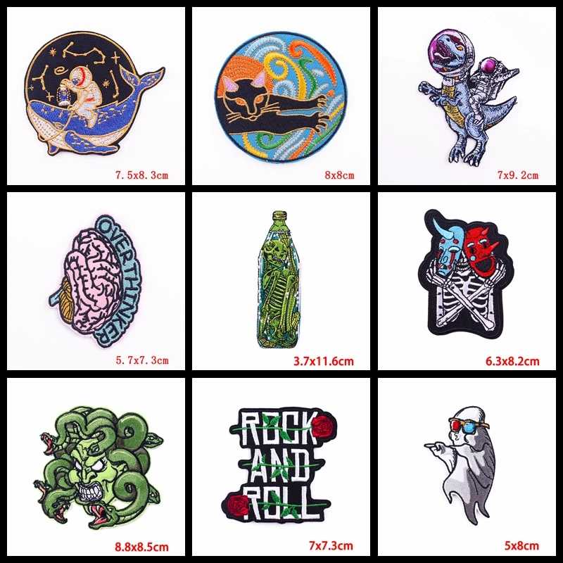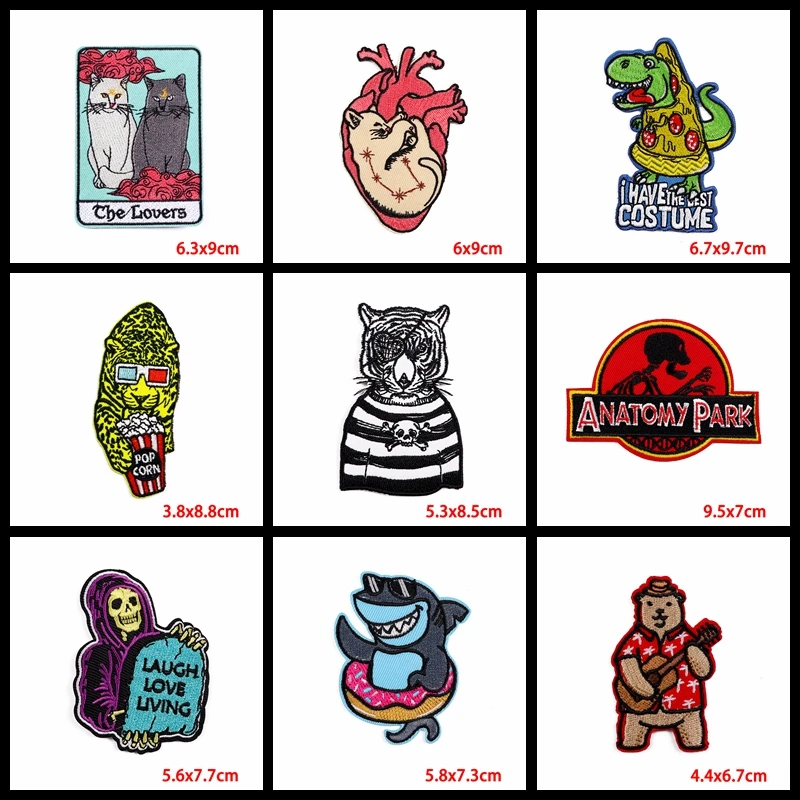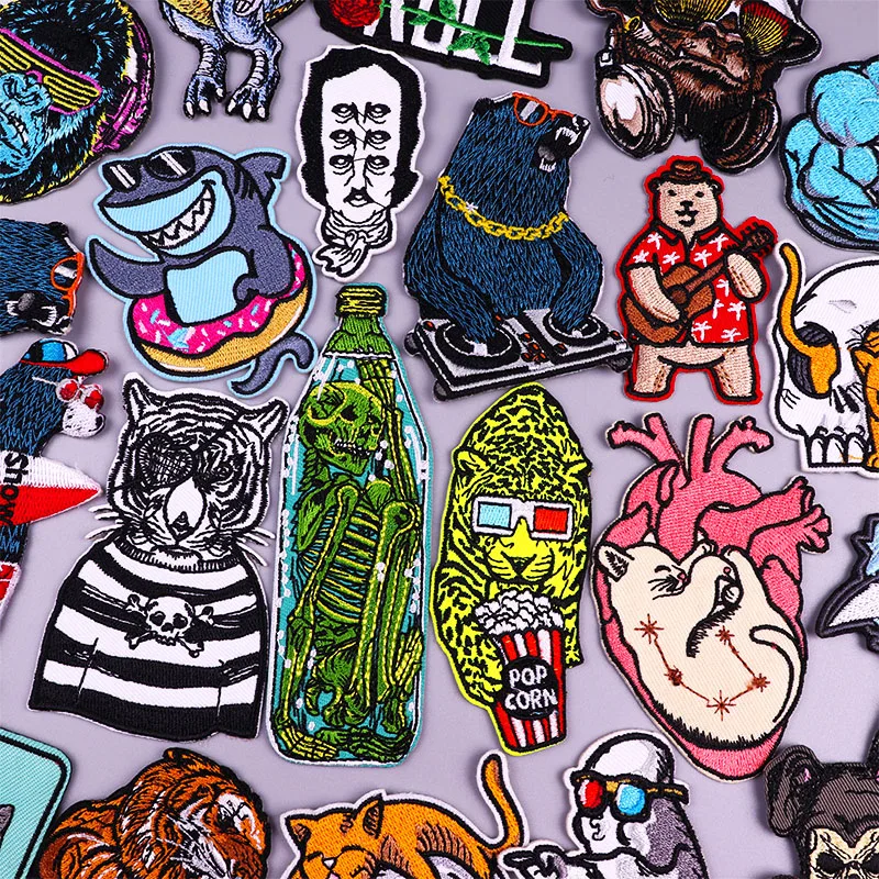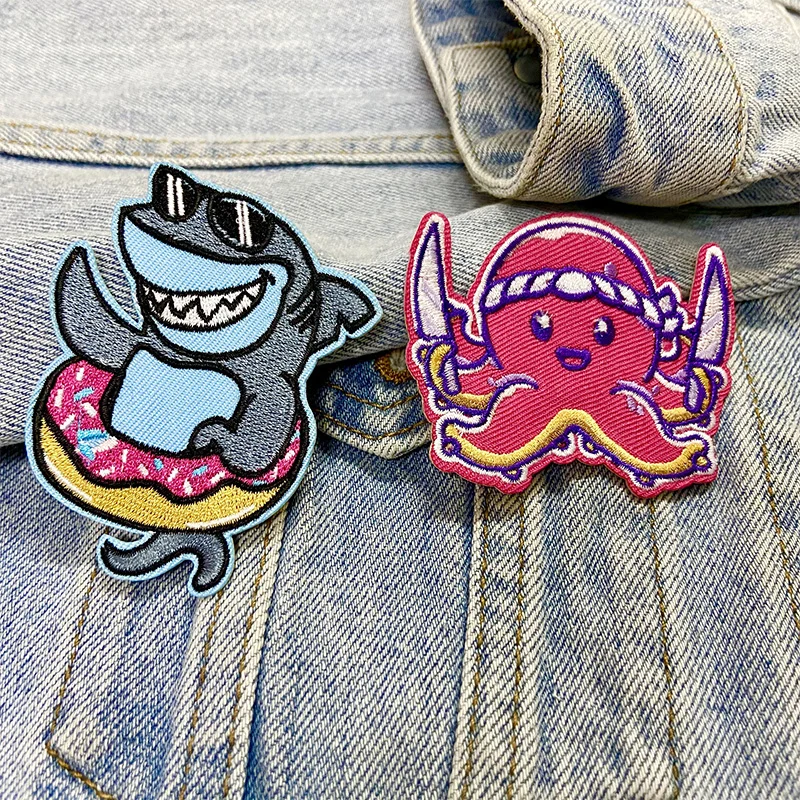 Parches bordados de tiburón Prajna Rock para ropa, parches de animales Punk con gancho para ropa, pegatinas, insignias de parche de costura de dibujos animados