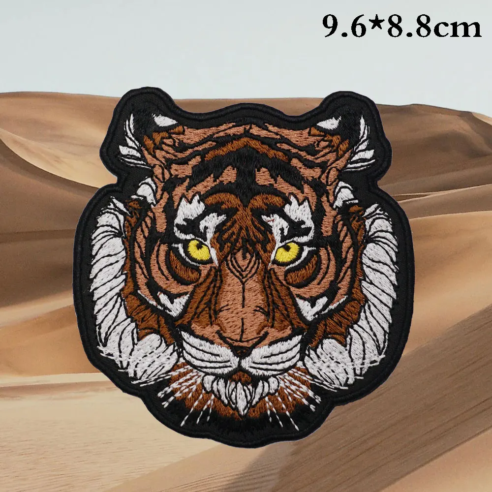 Parches bordados de Tigre, Lobo, perro, etiqueta de costura, banda de motorista punk, insignias de ropa de Rock con respaldo de gancho o coser
