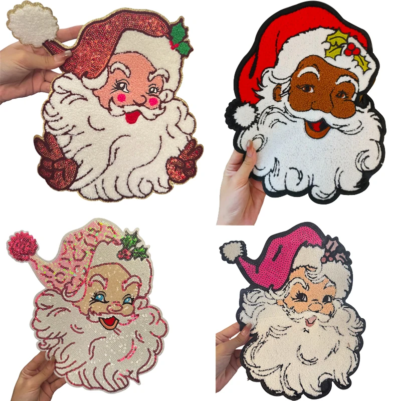 Grandes decoraciones navideñas para el hogar, parches bordados de toallas, parche de ciervo para árbol de Papá Noel, parches de hierro para ropa, parche de costura