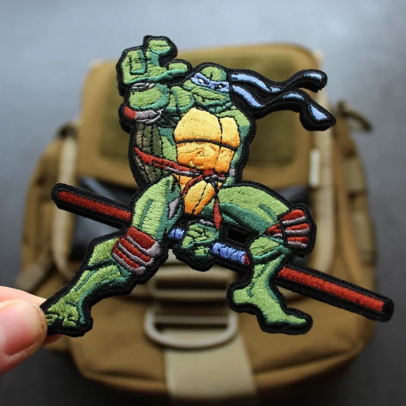 Parches bordados de tortuga, brazalete de gancho y bucle, insignia de Moral de Anime en mochila, chaleco táctico, pegatina, parche decorativo