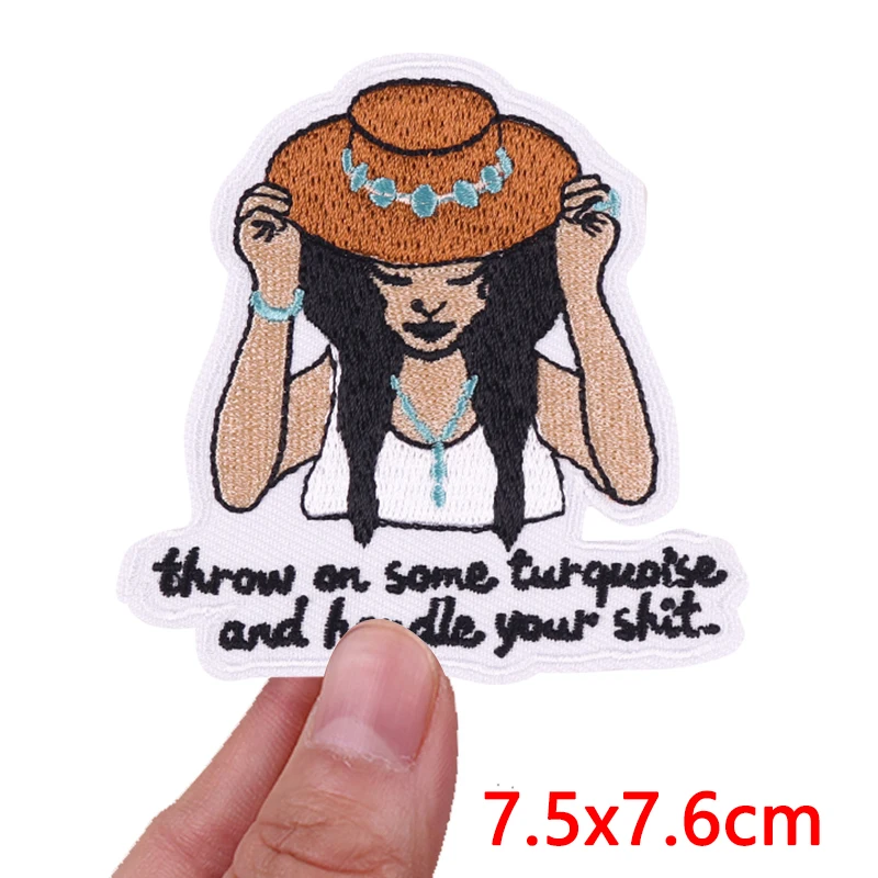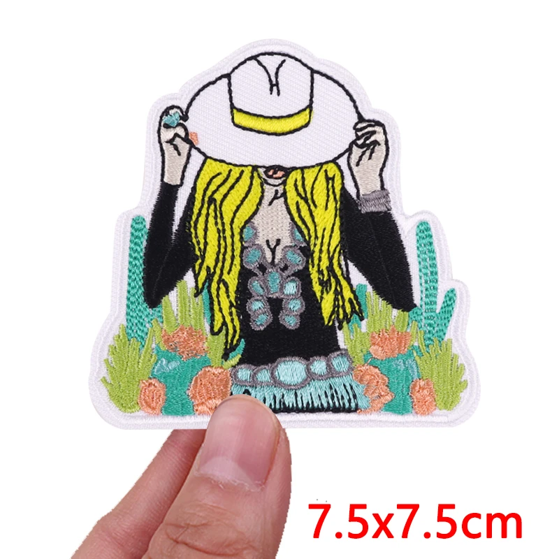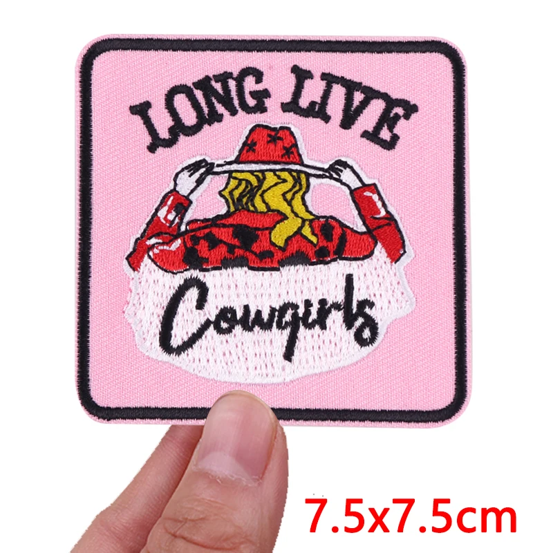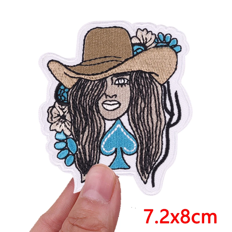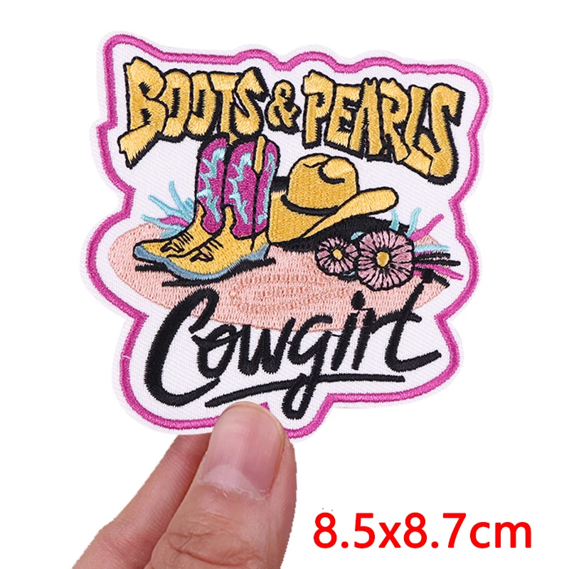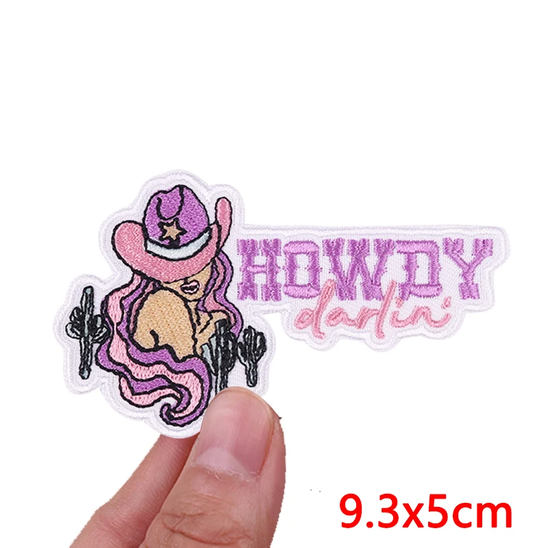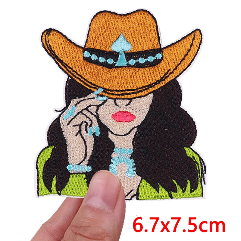 Parches bordados de vaquera/muñeco occidental para ropa, chaquetas, parche de dibujos animados DIY, parches de hierro para ropa, pegatina de costura con letras