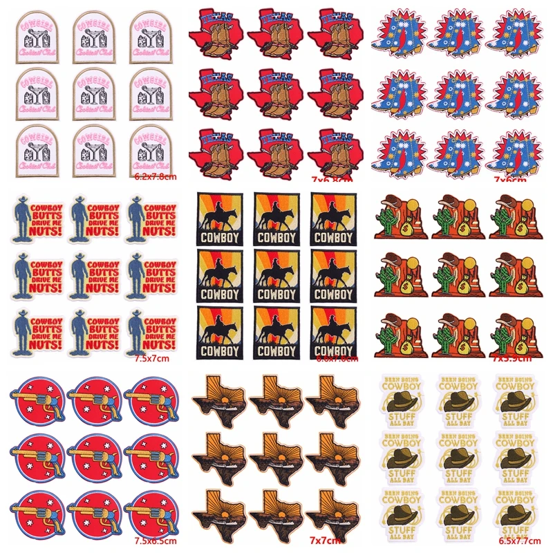 10 unids/lote de parches bordados de vaquero salvaje en la ropa, parche bordado de Texas Westcowboy, parches de hierro para insignias de ropa