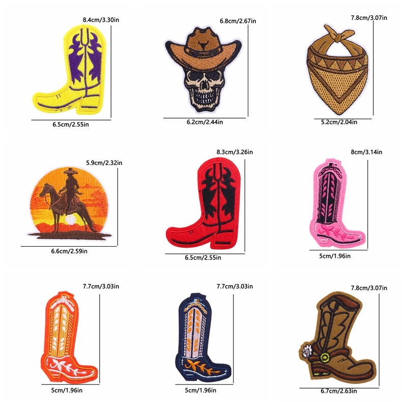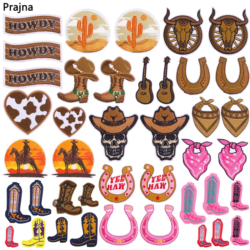 Parches bordados de vaquero occidental, chaquetas, mochila, sombreros, insignias de coser, parches de hierro para ropa, botas DIY, parche para caballo, 5 uds.