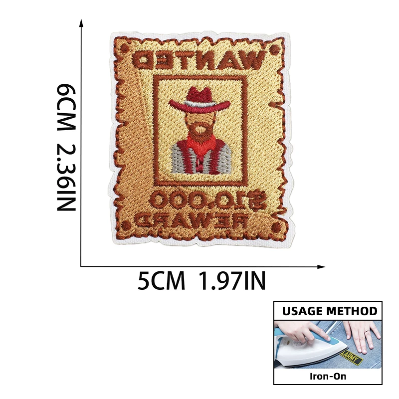 Parches bordados de vaquero occidental, emblema de dibujos animados, decoración de ropa, parche bordado de sombrero, insignia de hierro de revólver