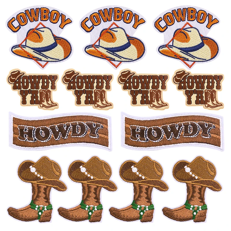 Parches bordados de vaquero occidental para ropa al aire libre, parches para planchar en la ropa, apliques para chaquetas, 10 piezas, venta al por mayor