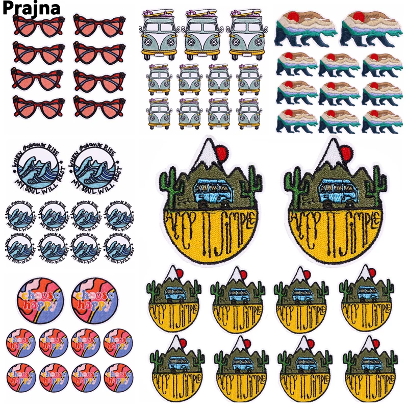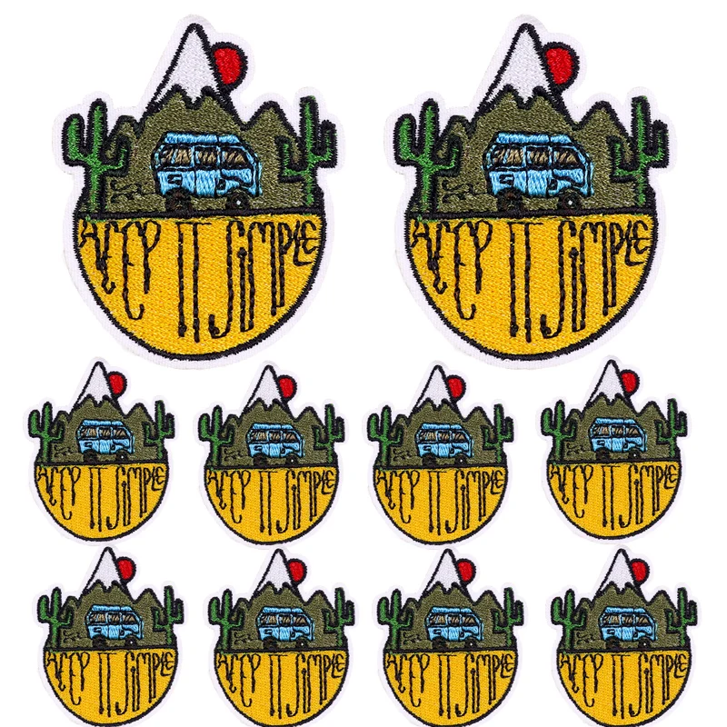 Parches Bordados de Viaje al Aire Libre para Planchar, Parche para Ropa, Chaqueta DIY, Insignia de Aventura de Montaña, Pegatina para Ropa, 10 Unidades