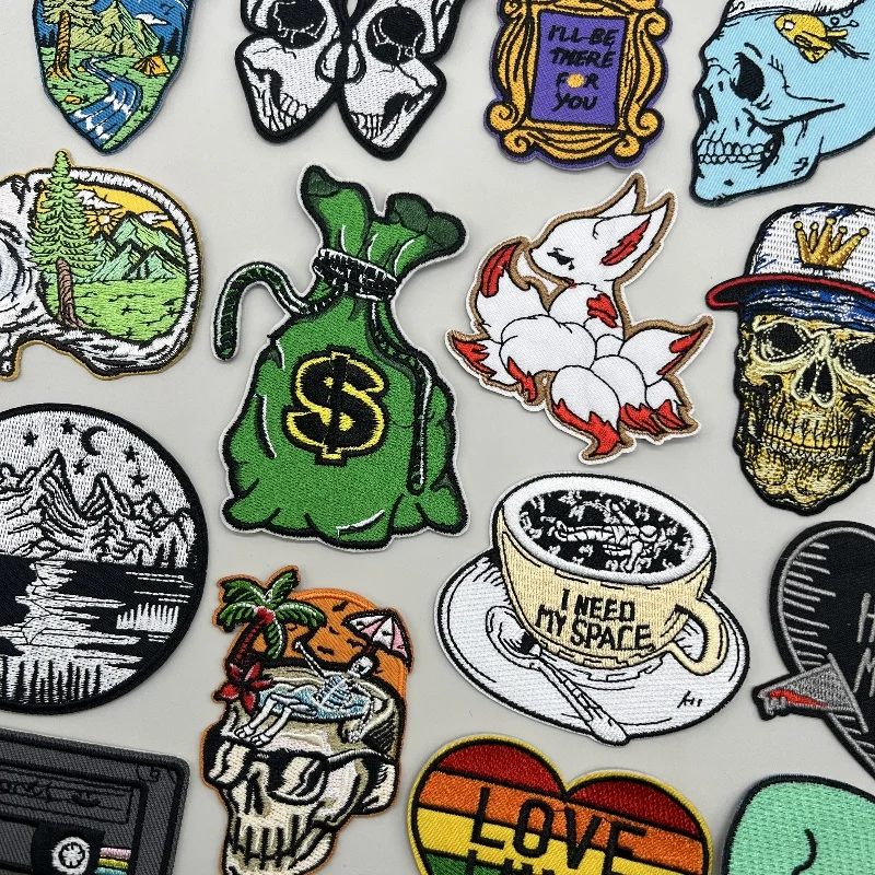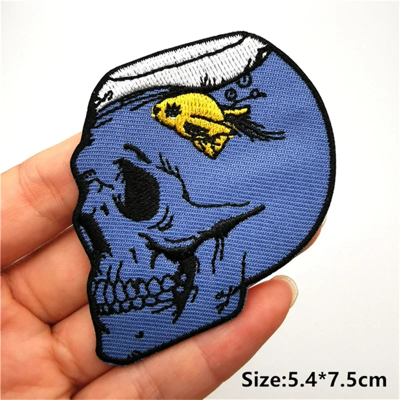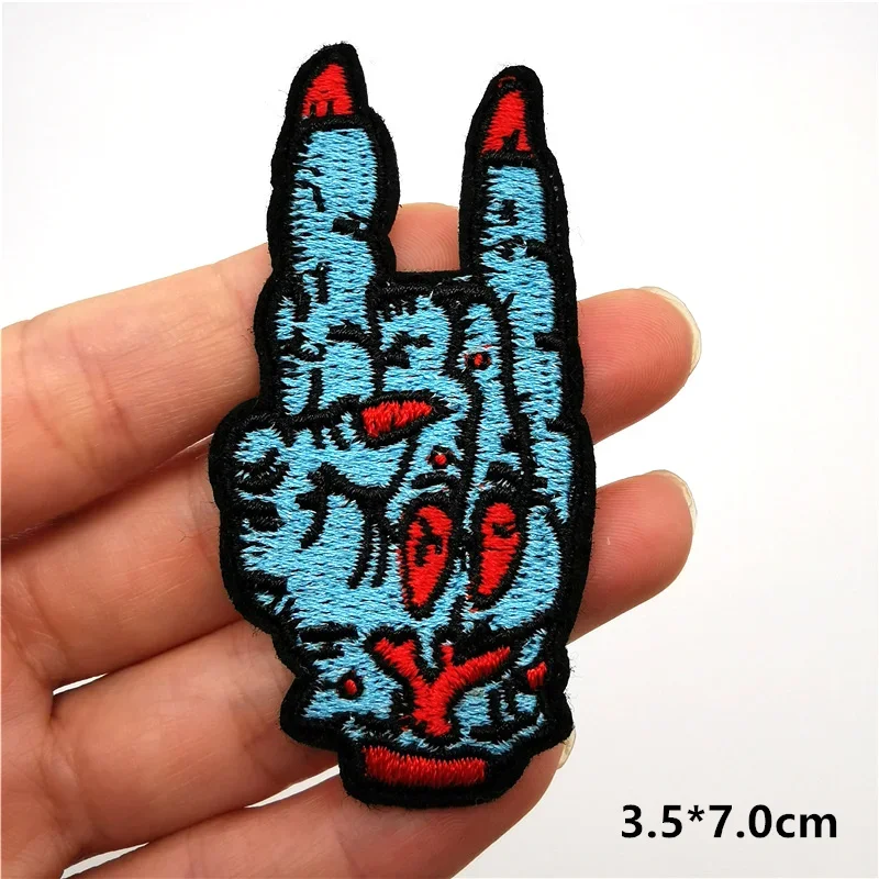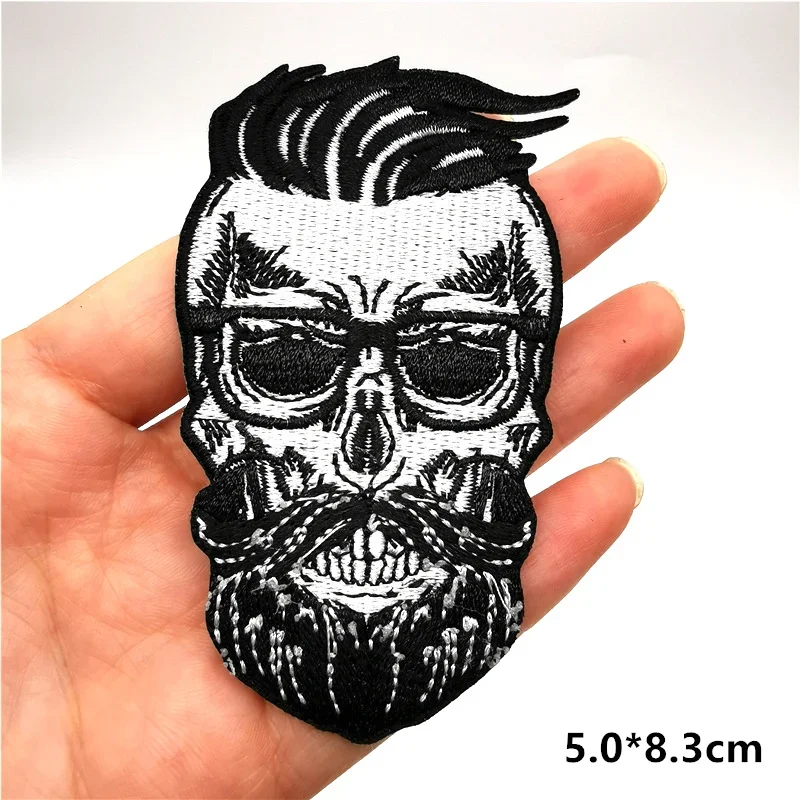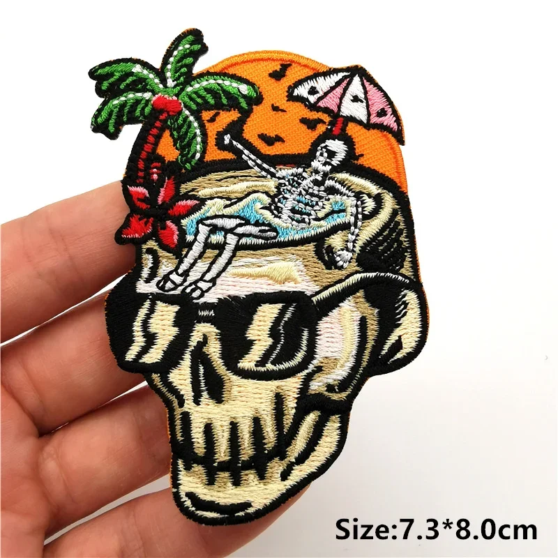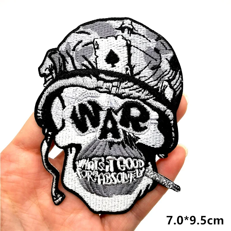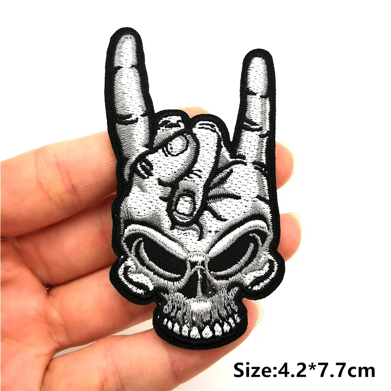 Parches de calavera de Rock Hippie, parches bordados para ropa, rayas de terror en ropa, mochila, insignias de parche Punk para planchar, pegatinas