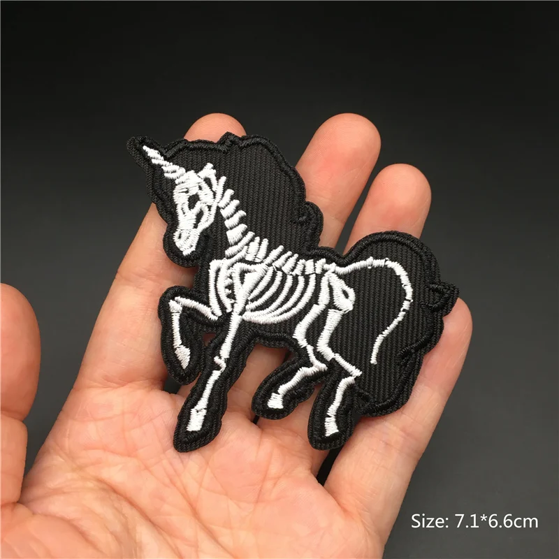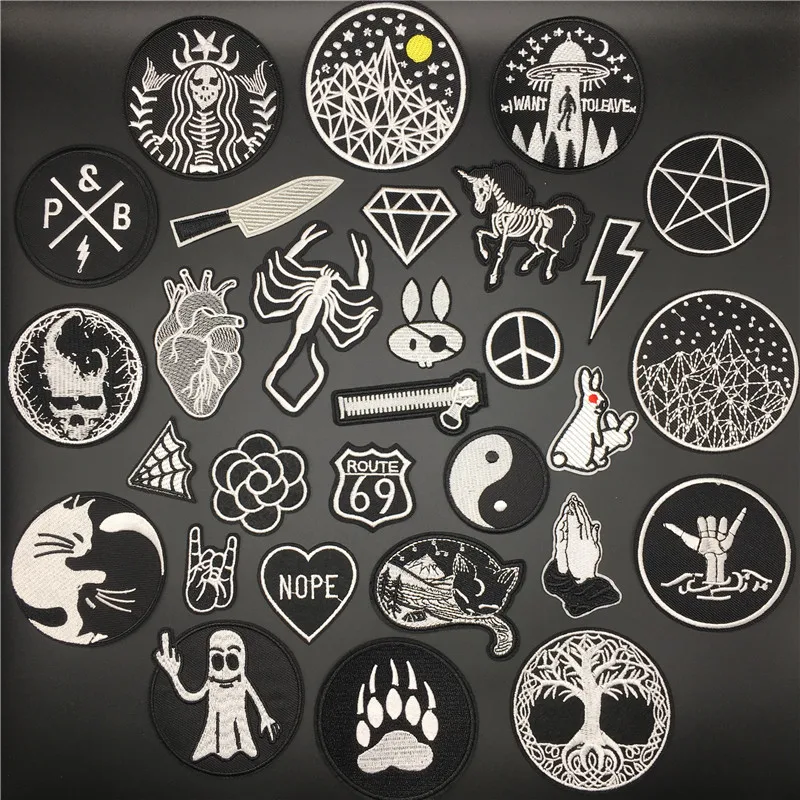 Parches de calavera Punk negros a la moda, apliques para planchar para ropa, chaqueta, pantalones vaqueros, parche bordado a rayas