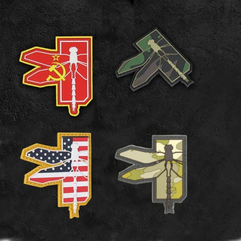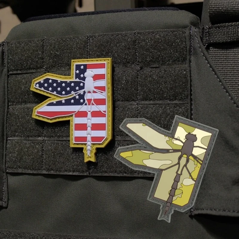 Parches de gancho y bucle de PVC 3D de libélula, Camuflaje táctico, insignia de Moral de Color MC, réplica de emblema de escorpión, pegatina para mochila