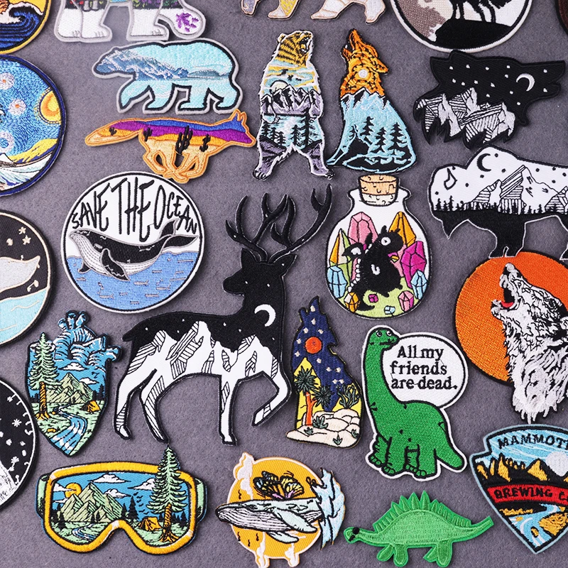 Outdoor Deer Patches Iron On Patches For Clothing DIY Animal Wolf Bear Embroidered Patch On Jeans Clothes Appliques Badges Decor